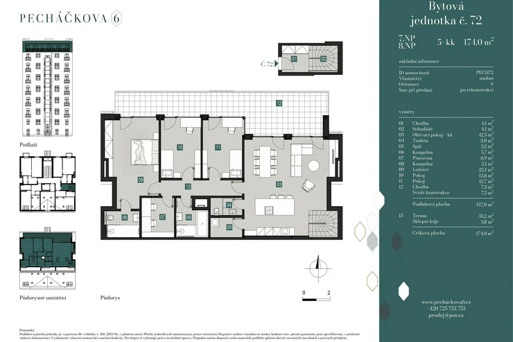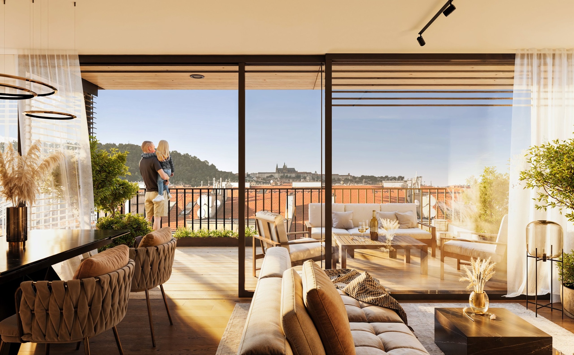 This generous four-bedroom apartment offering 137 m² of living space is located in the refined Pecháčkova 6 residential project. The development was created through a carefully executed reconstruction of a neoclassical building in Smíchov. Set in a peaceful riverside neighborhood, the apartment is just a short walk from the Smíchov embankment, nearby parks, and a full range of civic amenities.