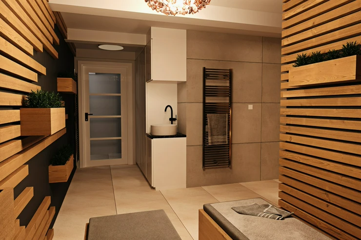 This one-bedroom apartment is part of the Pod Drinopolem residential project, which is being created by the complete reconstruction of an apartment building in one of the quietest parts of Prague 6. The location in the middle of a residential area offers a combination of greenery, privacy, and excellent accessibility to the center. The building includes a private sauna and a gym.
