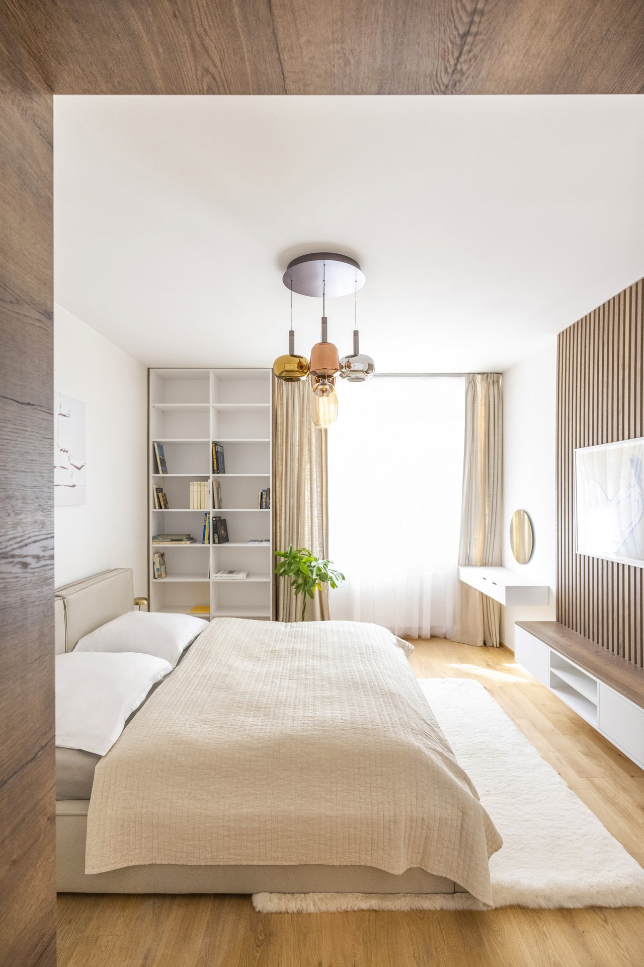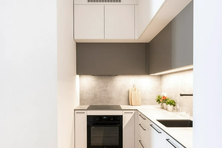 This one-bedroom apartment is part of the Pod Drinopolem residential project, which is being created by the complete reconstruction of an apartment building in one of the quietest parts of Prague 6. The location in the middle of a residential area offers a combination of greenery, privacy, and excellent accessibility to the center. The building includes a private sauna and a gym.