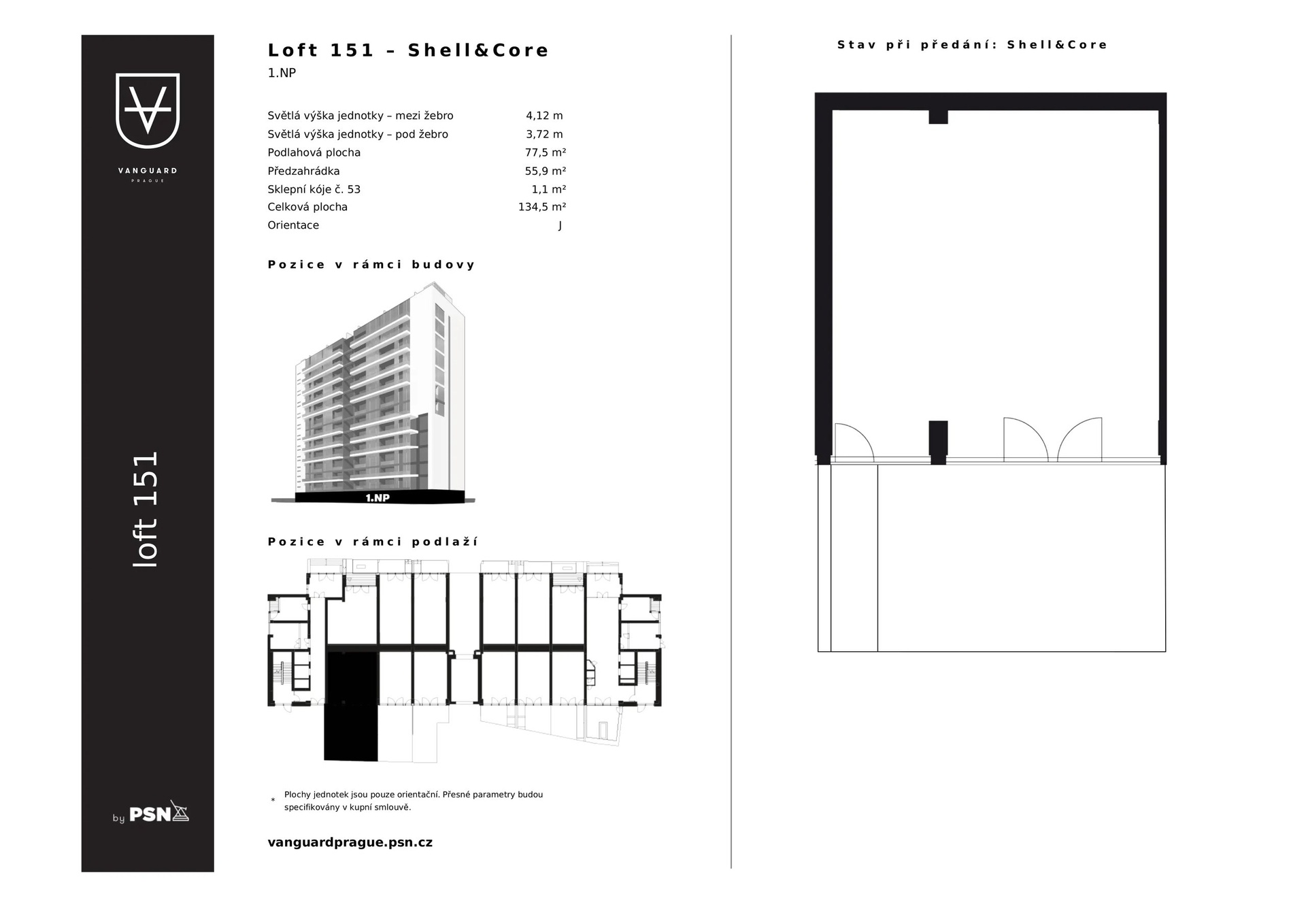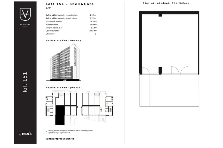 A spacious one-bedroom loft with a floor area of flat{area}living m² in the Vanguard project is a dream come true for those who want more than just a place to live. The open-plan shell & core design gives you complete freedom – create your home your way, whether it’s a generous living room with kitchen or a peaceful bedroom with facilities