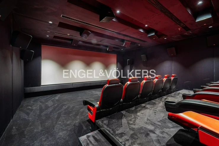 The V Tower residence, designed by Radan Hubička’s architectural studio, offers premium services including a reception area and an exclusive club floor with a fitness centre, swimming pool, hot tub, sauna, conference rooms, and a children’s play area. A private cinema and a golf simulator are also available.