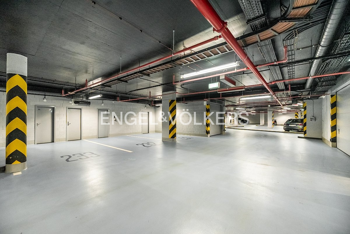 The apartment comes with two garage parking spaces and two spacious cellars (each 5 m²). The location offers a full range of amenities, including the Arkády Pankrác shopping center, and excellent transport accessibility thanks to the Pankrác metro station. Within walking distance are also Vyšehrad Park and Jezerka Park, as well as sports and cultural facilities such as Form Factory Pankrác and Žluté Lázně.