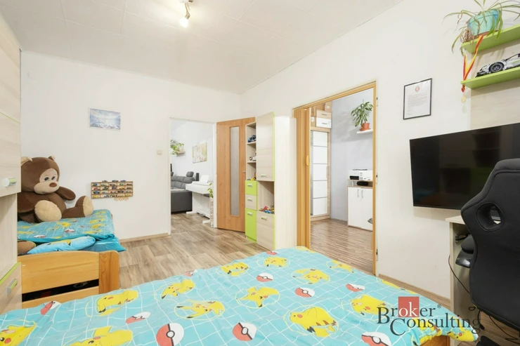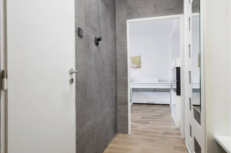 Díky tomu působí svěže, čistě a velmi domácky. Už při vstupu je cítit příjemná atmosféra místa, kde se dá okamžitě žít bez dalších starostí. Bezpečnost zajišťují nové protipožární vstupní dveře.