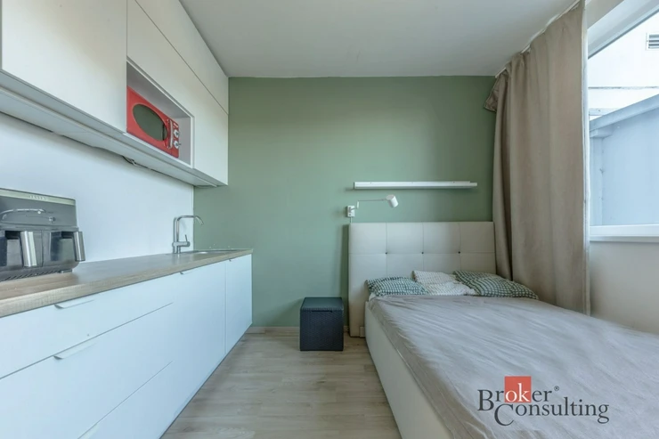 Nabízíme Vám exklusivně prodej garsoniéry o velikosti 16 m2, nacházejíce si v projektu V Bloku, Praha 5 - Jinonice, ulice Peroutkova. Praktické řešené je následující – vstupní chodba, koupelna se sprchovým koutem s toaletou, světlá místnost s kuchyňským koutem, kde je umístěna postel, pracovní stůl.