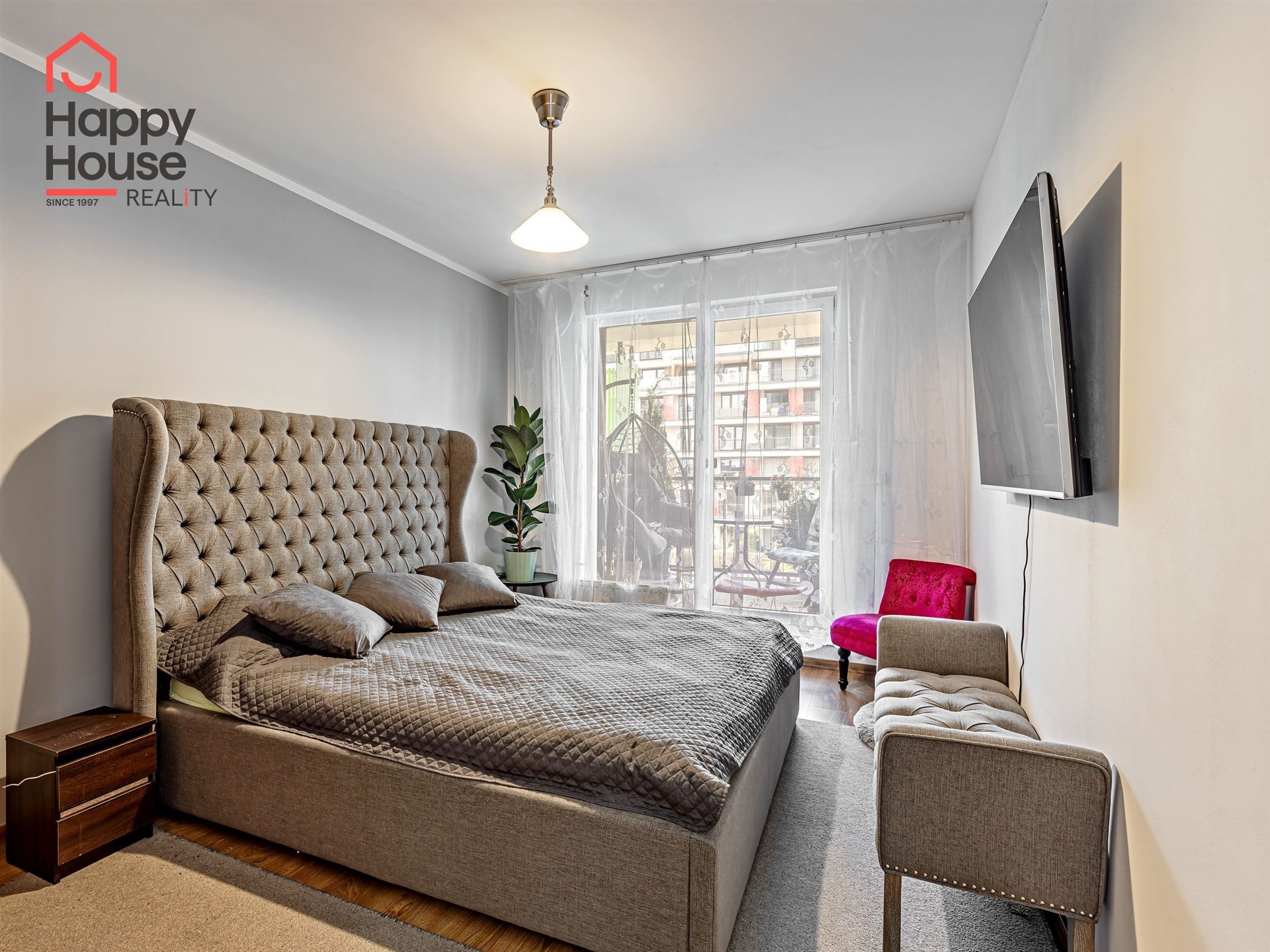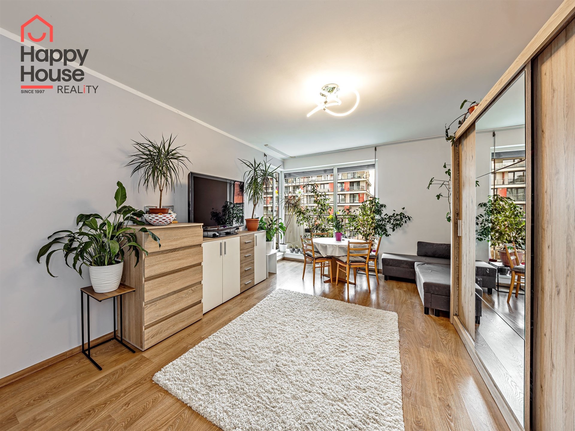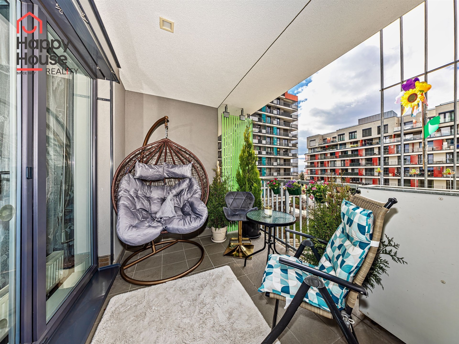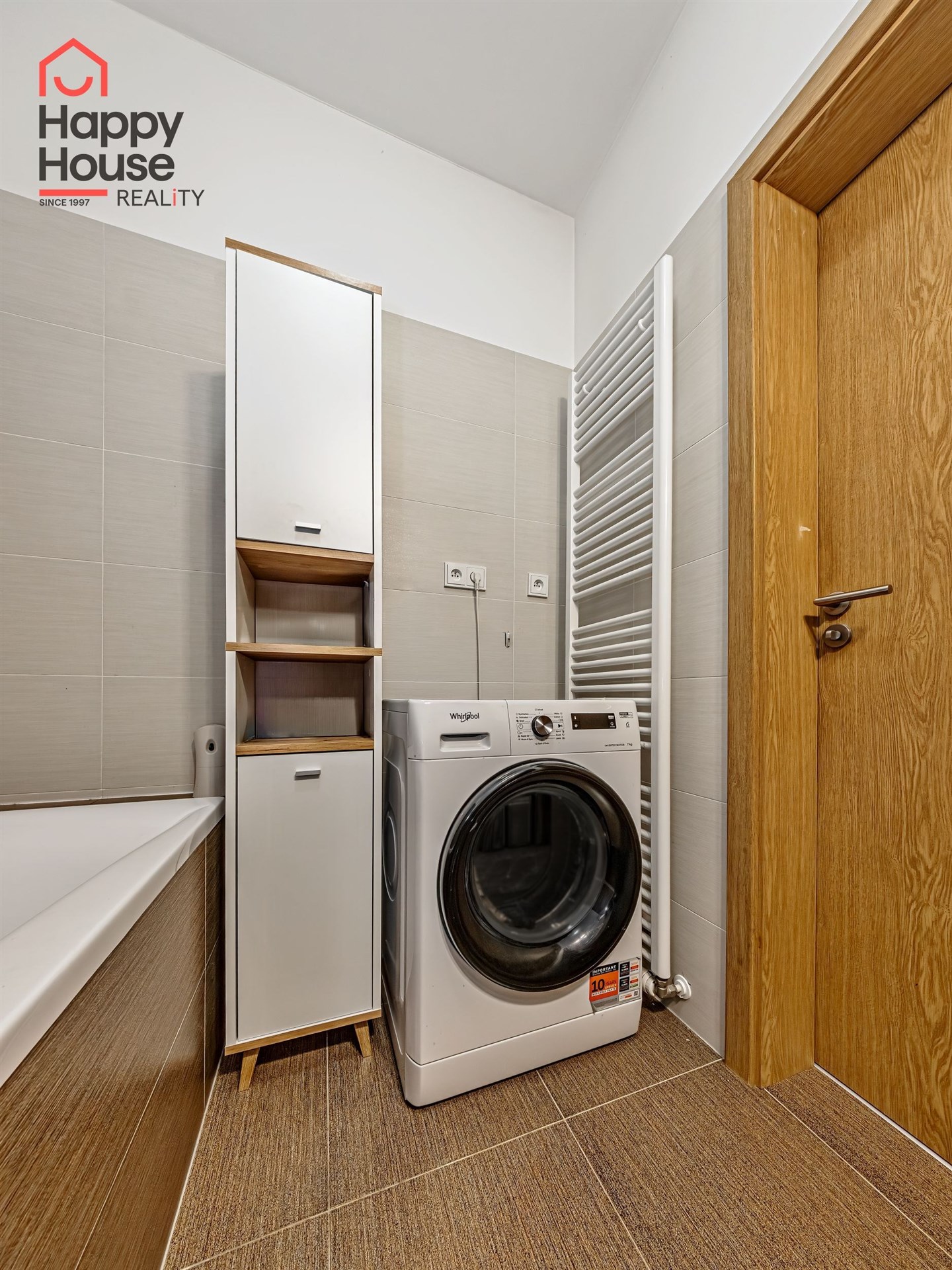 We are offering for sale a bright, cozy one-bedroom apartment with a living area of 57 sqm that includes a spacious loggia (9.8 sqm) on the 3rd floor of a newly constructed building with an elevator from 2013, located in Prague 10 - Malešice. The apartment unit faces west. A notable feature is that the loggia is accessible both from the living room and the bedroom. Upon entering, the interior of the apartment presents a spacious hallway, a living room with a kitchenette (26.9 sqm), a bedroom (14.6 sqm), a bathroom with a bathtub and a heated towel rail, a separate toilet with a small sink, and a storage closet (1.6 sqm). The kitchenette is equipped with kitchen unit, a ceramic hob, an electric oven, a dishwasher, a refrigerator, and an extractor hood that vents to a central ventilation system. Ample storage space is available in a built-in wardrobe in the hallway, in the bedroom, and in the previously mentioned storage closet. The apartment has central heating with a thermostat, plastic windows, laminate floors, and tiles. It also features a security door. The apartment includes one parking space in the underground garage. Vodafone and O2 are available in the building. The energy performance certificate indicates class C.