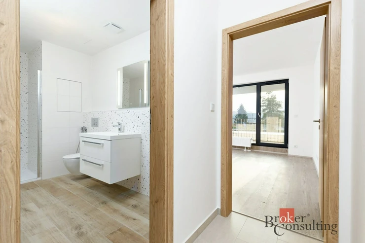 Byt je prakticky řešený a působí velmi příjemným a světlým dojmem. Dispozici tvoří vstupní chodba, koupelna se sprchovým koutem a toaletou, ložnice se vstupem na balkon a obývací pokoj s kuchyňským koutem, ze kterého je vstup na lodžii. Dva venkovní prostory poskytují ideální místo pro ranní kávu, odpočinek nebo posezení na čerstvém vzduchu.