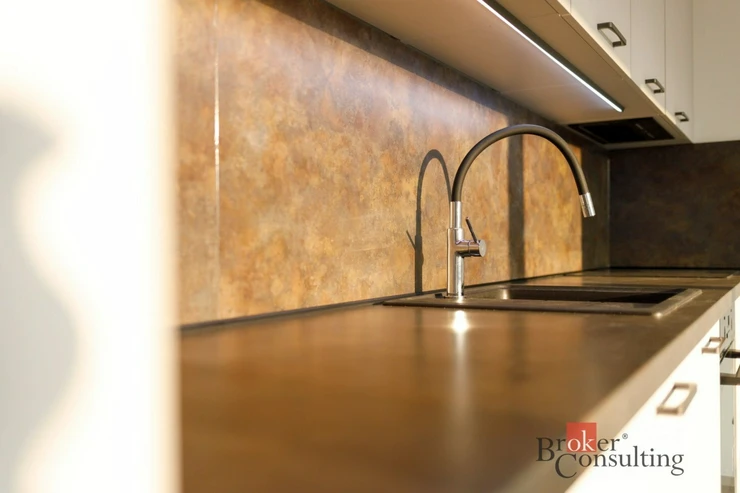 Součástí bytu je moderní kuchyňská linka s vestavěnými spotřebiči. K bytové jednotce dále náleží sklepní kóje a parkovací stání, které zajišťuje pohodlné parkování.