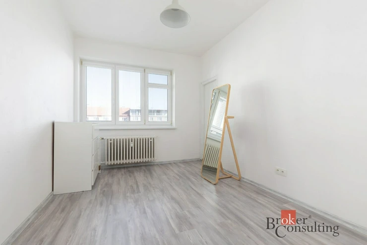 Dispozičně je byt velmi dobře řešený, pokoje jsou neprůchozí a poskytují dostatek soukromí pro všechny členy domácnosti. Celý prostor působí vzdušně a příjemně díky dostatku denního světla. Součástí bytu je také balkón, který nabízí příjemné místo pro odpočinek. Velkou výhodou jsou dvě komory, které zajišťují dostatek úložného prostoru.