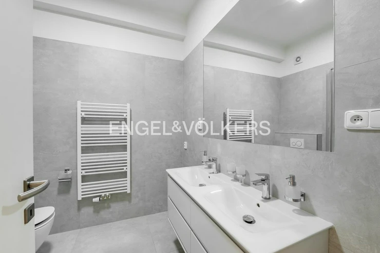 Modern technology ensures low operating costs and high comfort. Underfloor heating is installed throughout the apartment, the entire building is heated by a heat pump, and there are solar panels with their own energy storage on the roof. The energy efficiency of the building is therefore rated B.