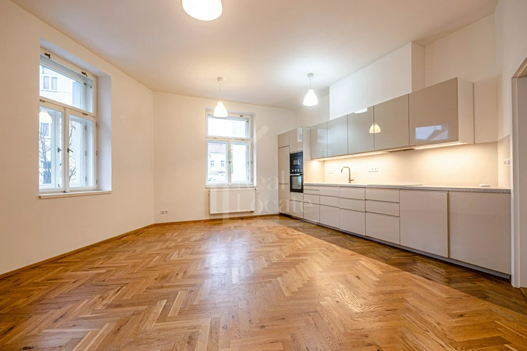 We are pleased to offer for sale an exceptional corner three-room apartment with a unique atmosphere and beautiful views of the iconic Church of St. Procopius. The apartment is situated on the 2nd floor of an elegant Art Nouveau building dating back to 1907, designed by the renowned architect Václav Foltýn.