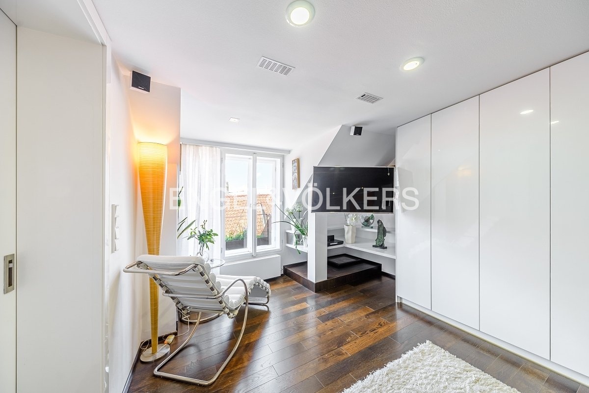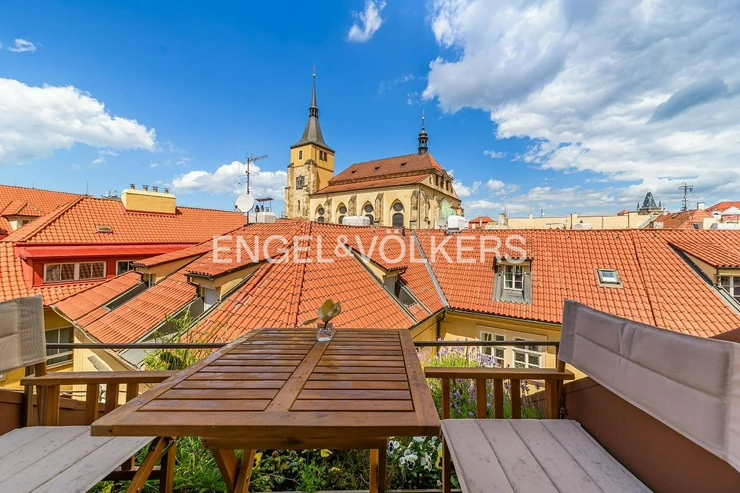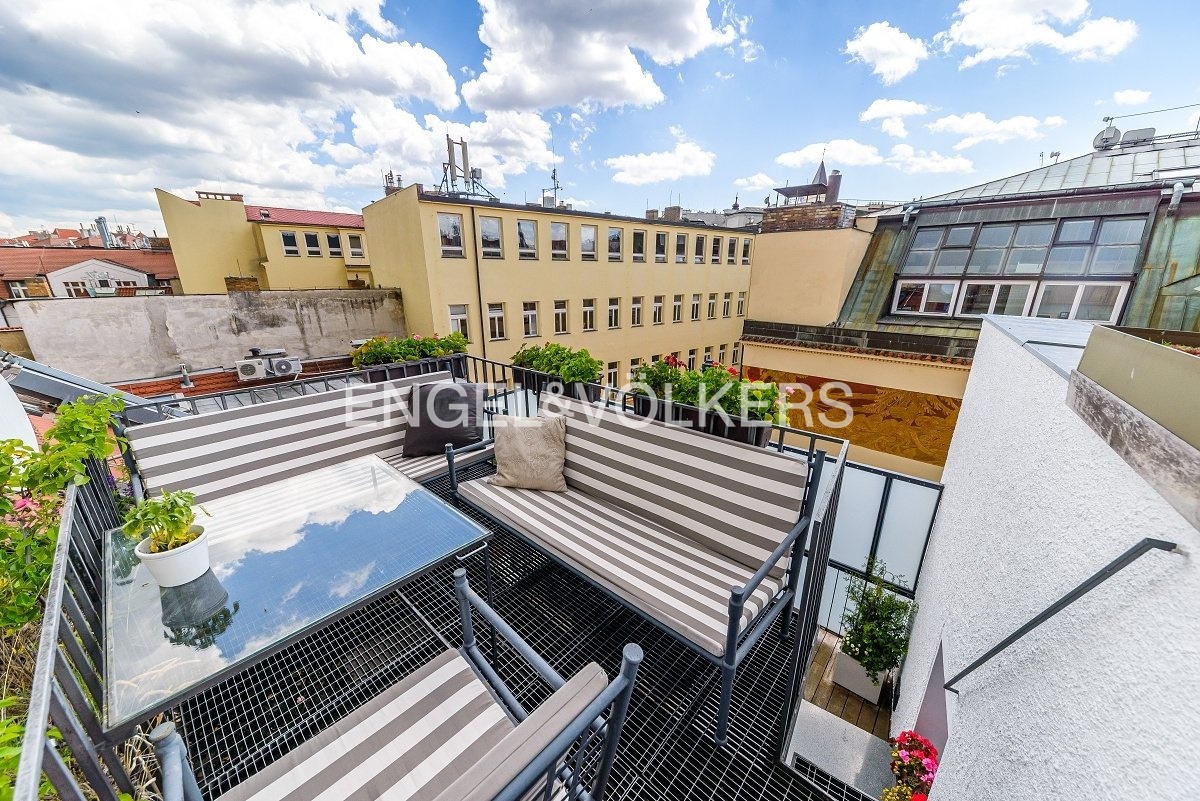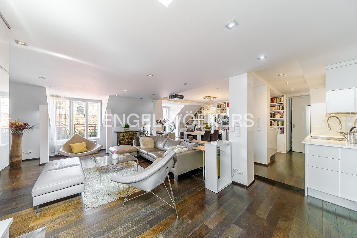 We offer an exclusive penthouse duplex in a meticulously maintained building with only five units in the heart of Old Town. The apartment has five balconies and two terraces with panoramic views of the Old Town.