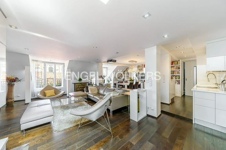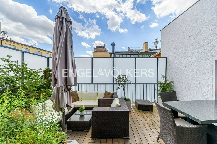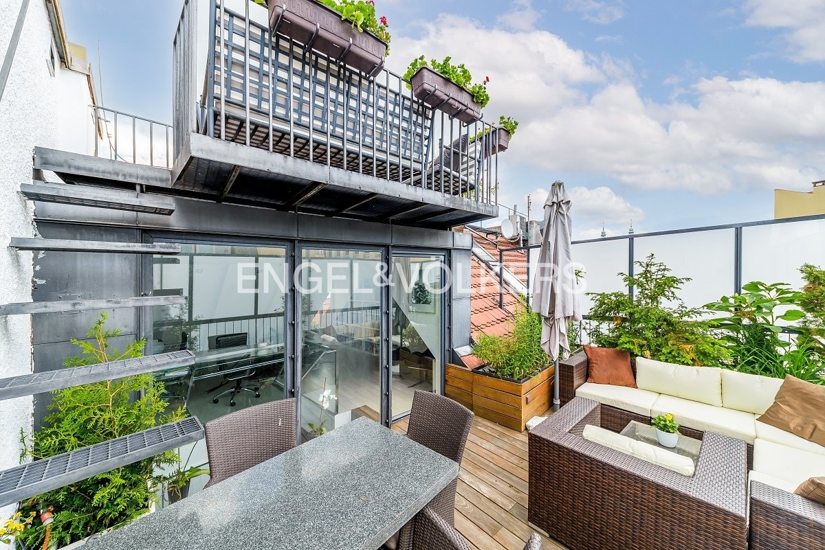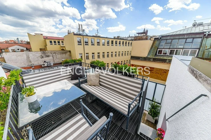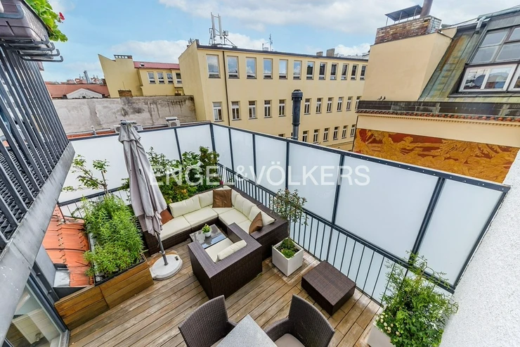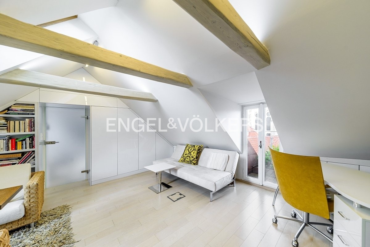 We offer an exclusive penthouse duplex in a meticulously maintained building with only five units in the heart of Old Town. The apartment has five balconies and two terraces with panoramic views of the Old Town.