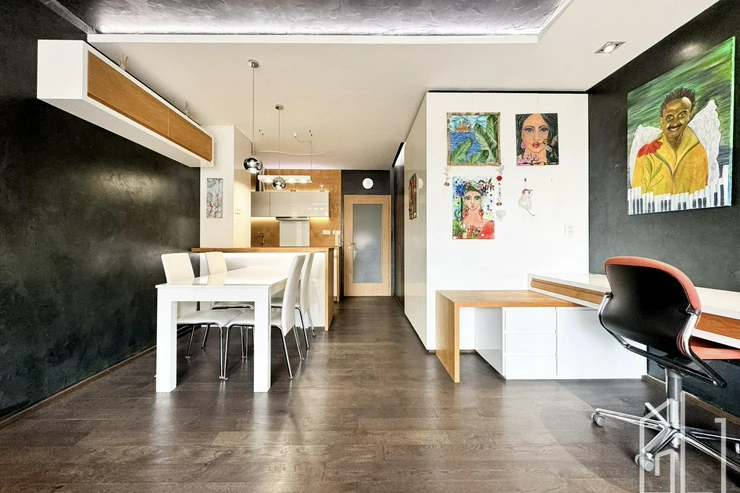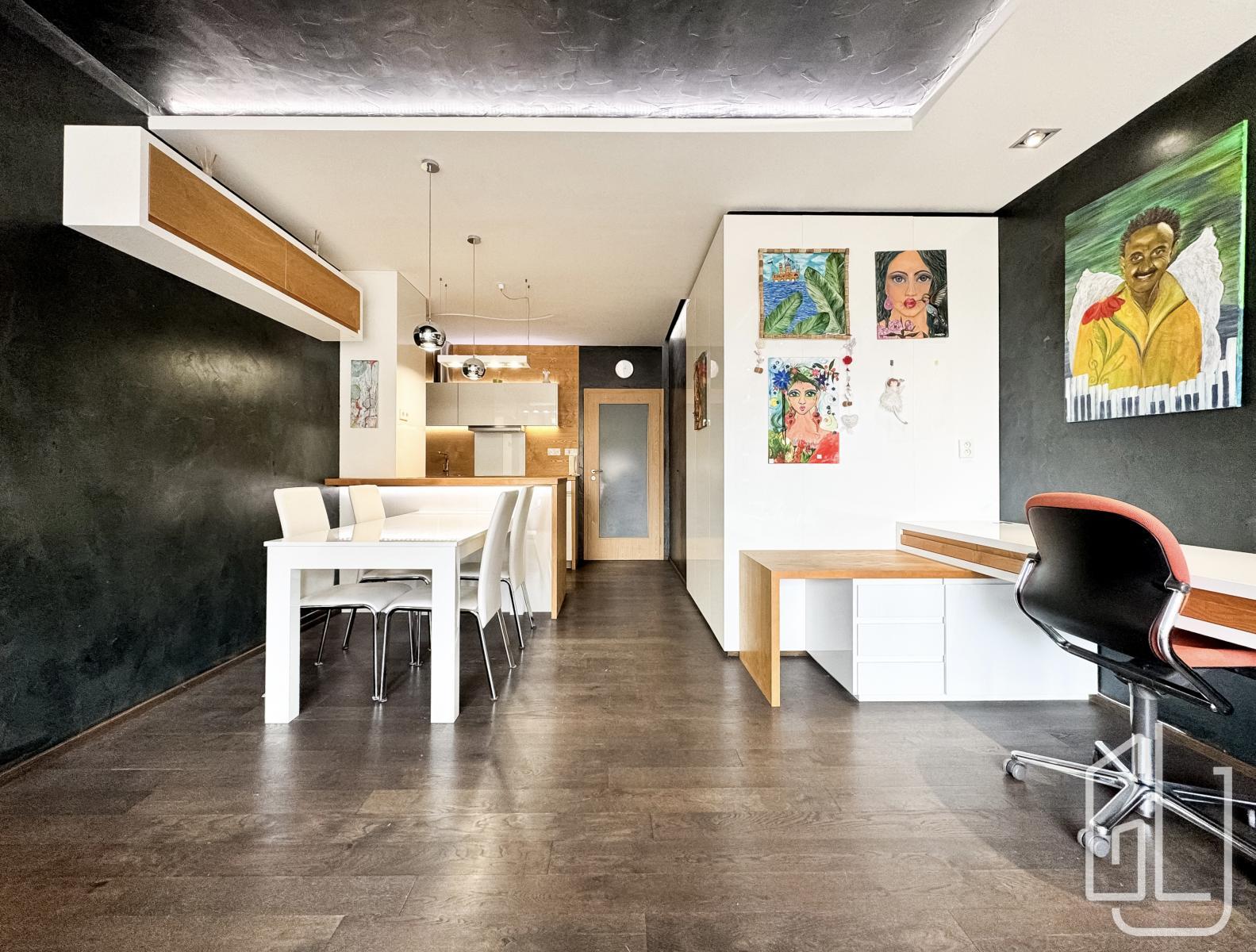 Byt prošel nadstandardní designovou úpravou s důrazem na kvalitu materiálů, funkčnost a moderní estetiku. Interiér působí velmi elegantně a nabízí komfortní bydlení bez nutnosti dalších investic.