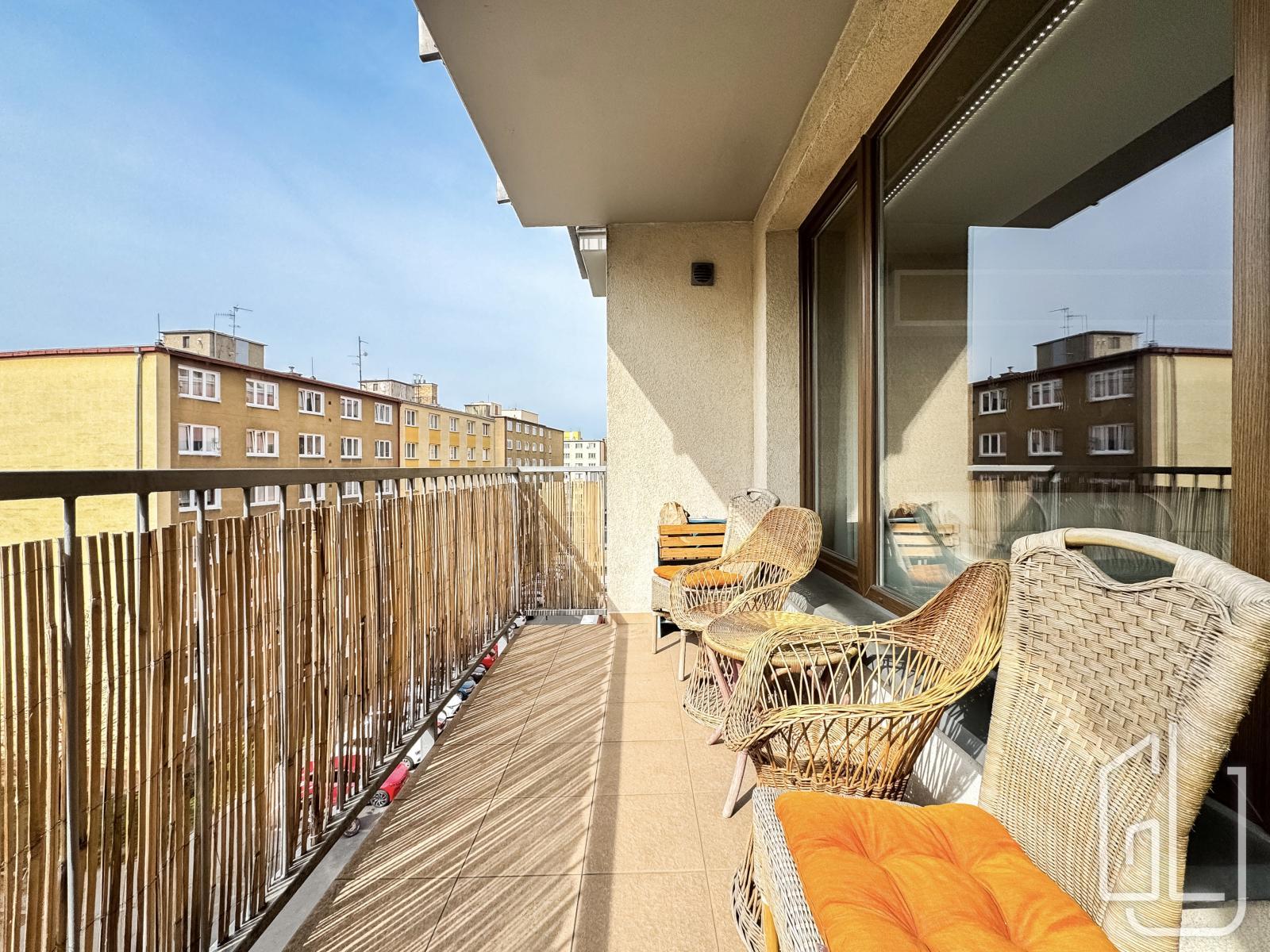Součástí bytu je balkon o velikosti 5 m2, ideální pro odpočinek. K dispozici je také sklep o ploše 3 m2 a garážové stání.
