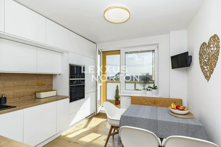 We are offering for sale a spacious 3-bedroom apartment with a total area of 67.55 sqm and a 3.80 sqm balcony, located on the 11th floor of a prefabricated building in Prague 9 – Letnany. The apartment faces south, which means it is bathed in sunlight all day long and feels very bright and airy. The apartment features three spacious rooms: a bedroom measuring 8.80 sqm, a children’s room measuring 12.60 sqm, and a separate living room measuring 17.90 sqm. The apartment also features a separate kitchen measuring 11.40 sqm, equipped with a high-quality, custom-made kitchen unit including appliances; an entryway with built-in closets providing ample storage space; a bathroom; a separate toilet; and a glassed-in balcony. The apartment also includes a basement storage unit. The entire building underwent a complete renovation in 2016, including exterior insulation, renovation of the interior common areas, brick-lined basement storage units, new suspended ceilings, painting, flooring, and the installation of two new elevators. The apartment features laminate flooring, a tiled bathroom, and a separate tiled toilet. The kitchen has recently undergone a complete and extensive renovation, bringing it up to modern standards. The balcony is enclosed with glass and has direct access from the kitchen, providing a pleasant space for relaxation even during the colder months. The apartment is ready for immediate occupancy, yet it can easily be customized to suit the new owner’s personal vision and taste.The apartment is located in a highly accessible area with all amenities. Right in front of the building, you’ll find an Albert supermarket and the Frydecka health center; other medical facilities, pharmacies, and a library are just 350 meters away. A school and a preschool are within a 3-minute walk. A bus stop with a connection to the Letňany metro station is about a 5-minute walk away. For shopping and entertainment enthusiasts, the Letnany shopping center with a Cinema City theater is available (about a 9-minute walk). The surrounding area also features Letnany Forest Park (a 15-minute walk), the Lagoon swimming pool, Jumppark, and the Jungle bouldering hall. Parking for Letnany residents is available in front of the building.
