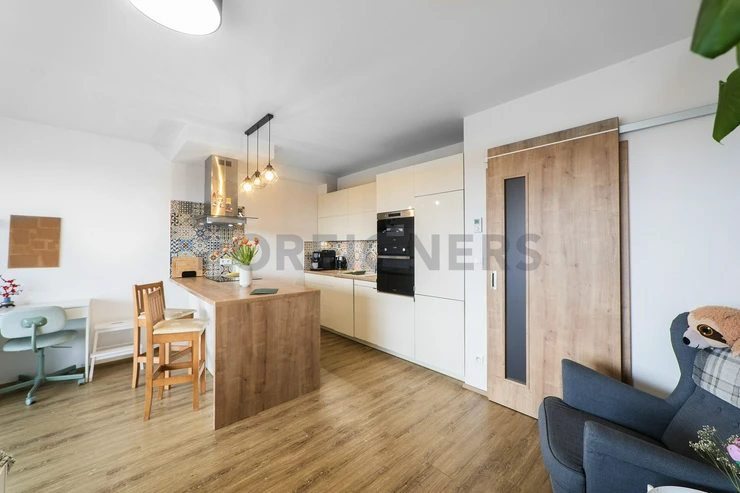 The apartment will impress you right from the moment you enter – it is bright, airy and thanks to the large loggia, it offers a pleasant connection between the interior and the outdoor space.