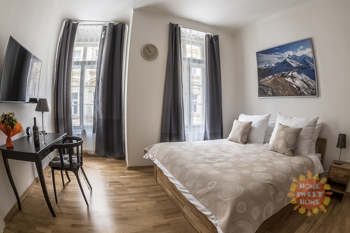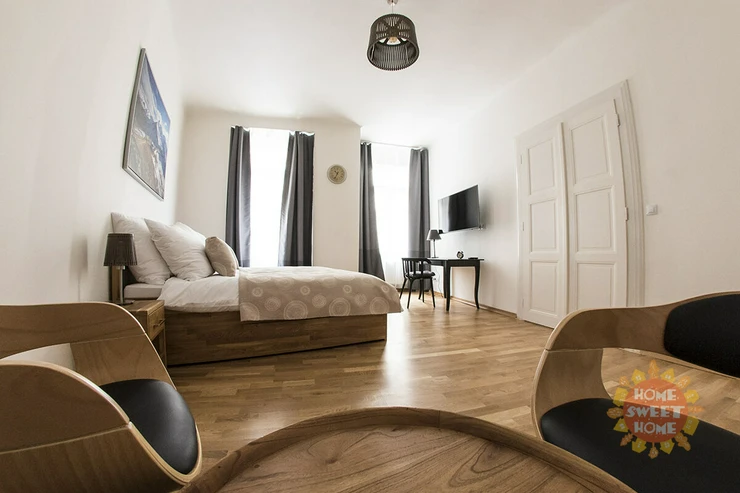 We offer for sale a luxurious privately owned 2+1 apartment with two bathrooms, with an area of 89.60 m², located on the 2nd floor of a historic building with an elevator on Ve Smečkách Street in the center of Prague. This apartment underwent a complete and costly renovation in 2015, during which the interior was sensitively customized with elements of Scandinavian style. High-quality solid wood materials were used, giving the apartment a very warm and pleasant feel.