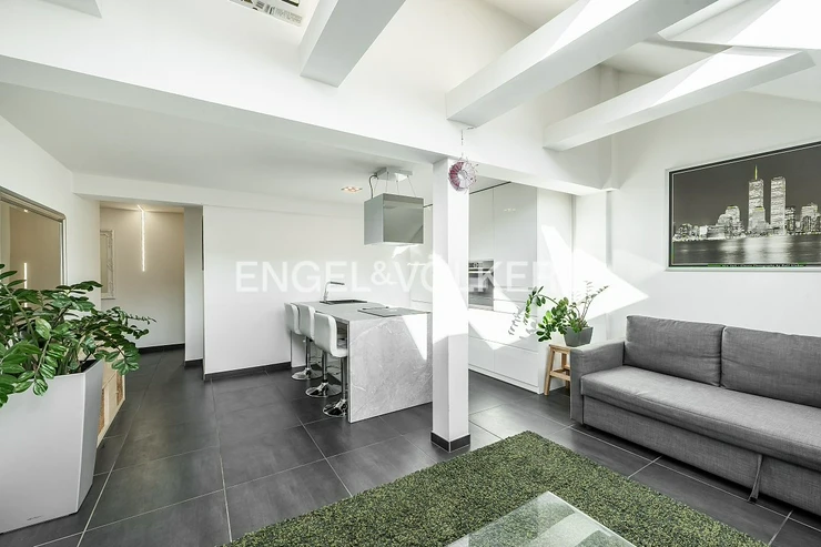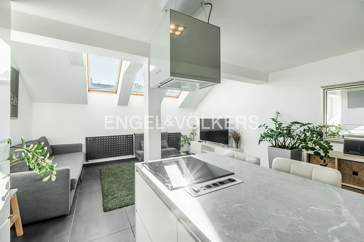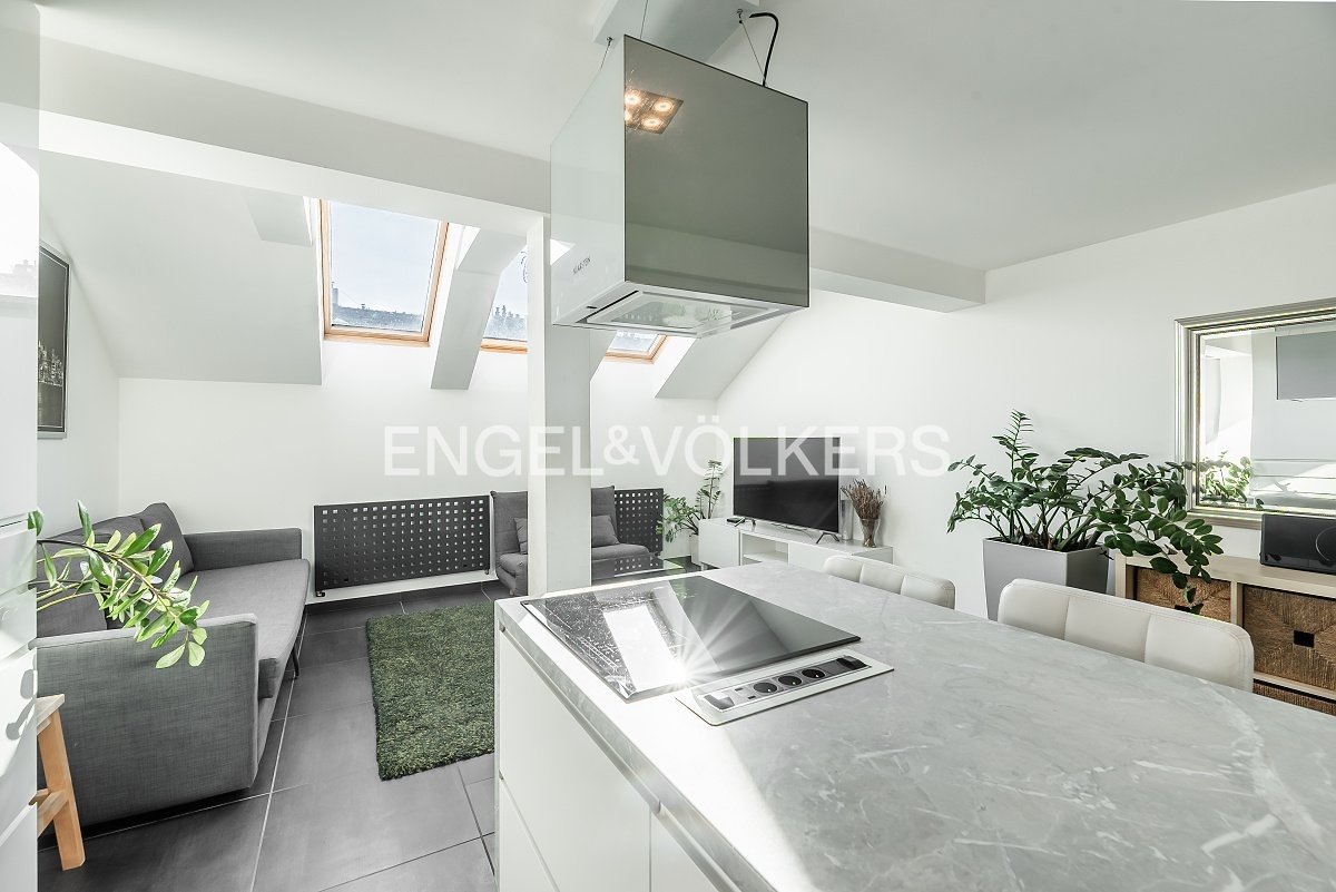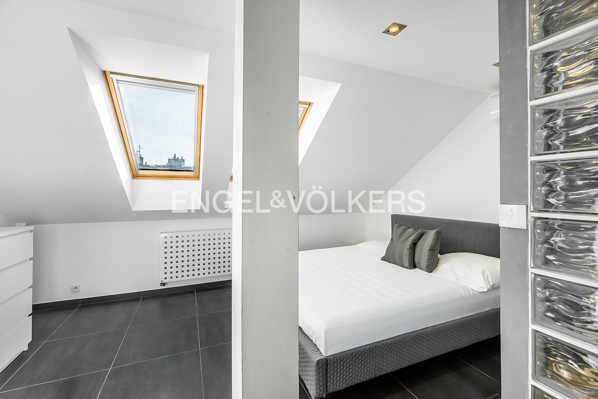 This unique 2+kt attic duplex offers stylish and quiet living in the very heart of Smíchov – in a prestigious apartment building dating back to 1919.