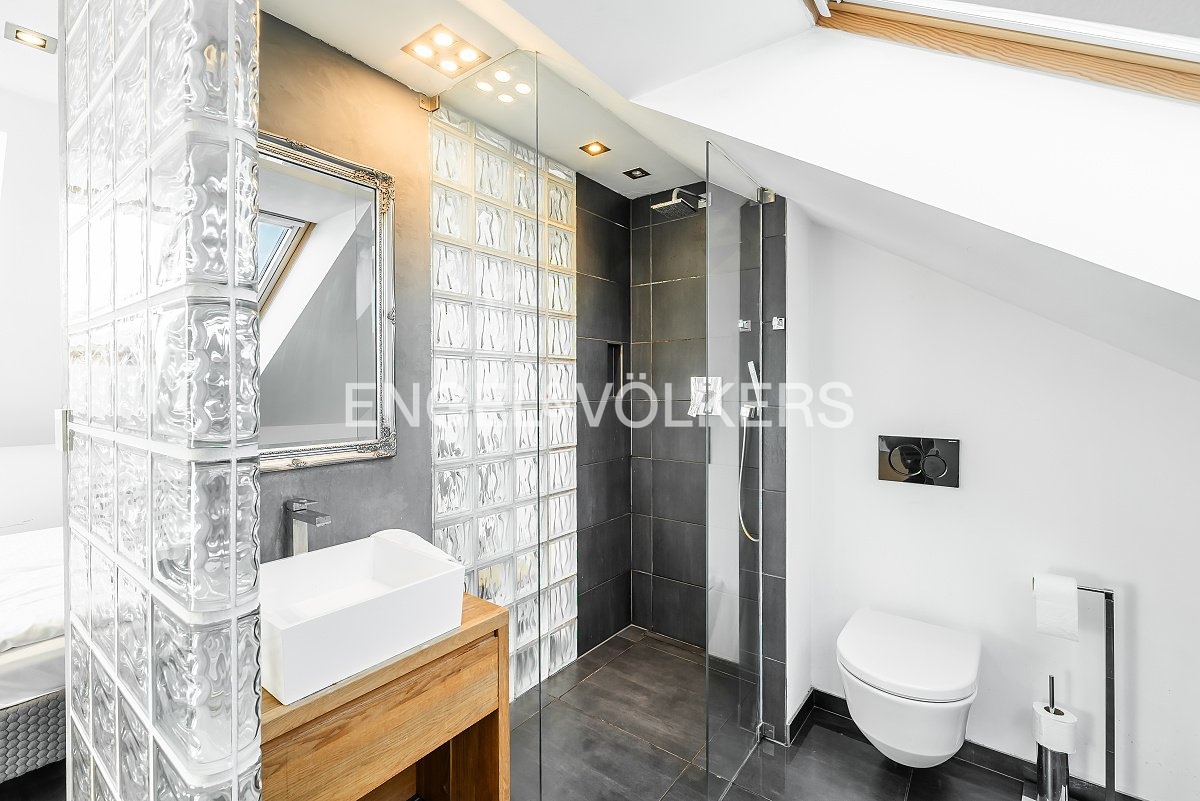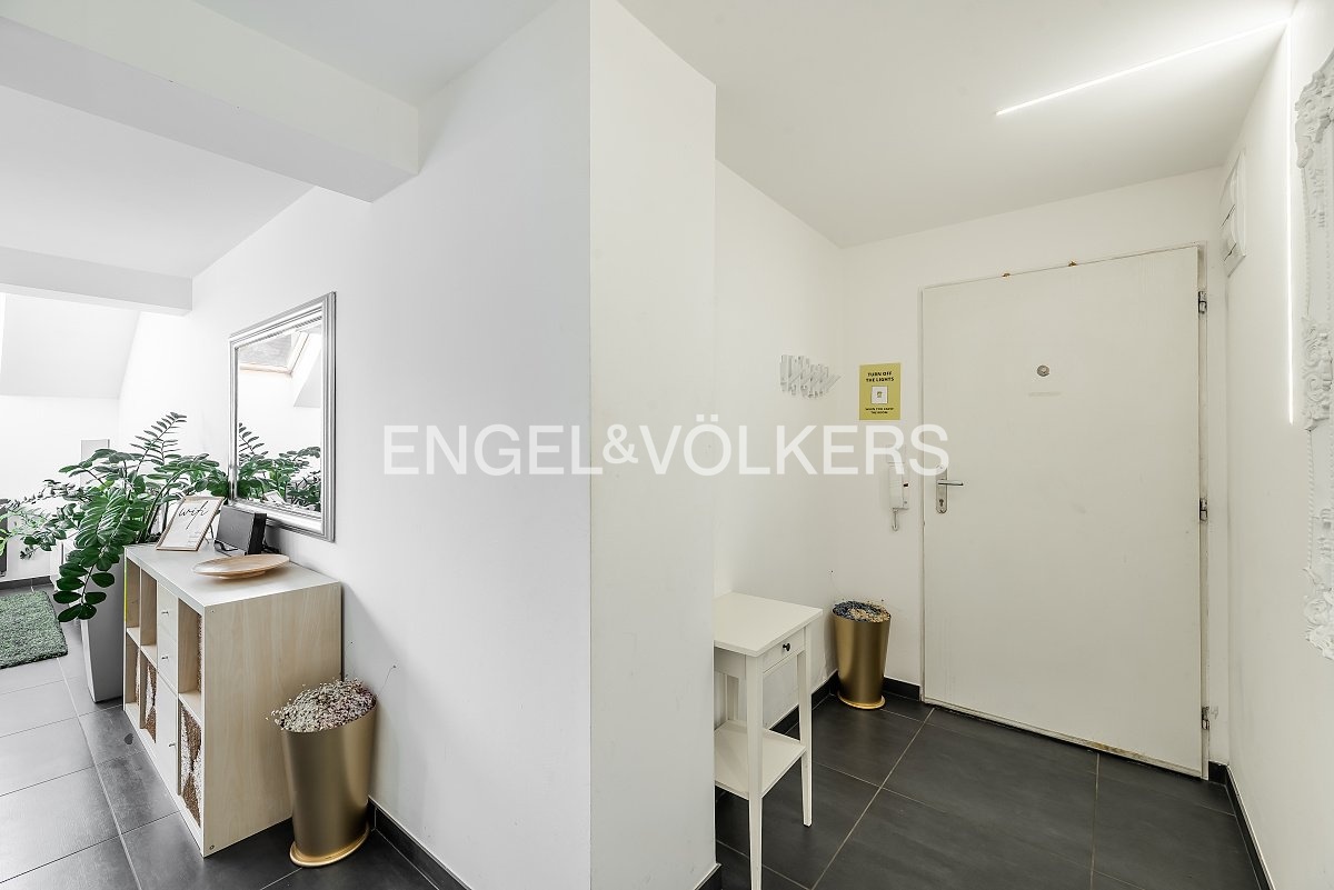 The apartment is located on the top floor of a building with an elevator. It was created as an attic conversion in 2005 and was completely renovated into its current form in 2018.