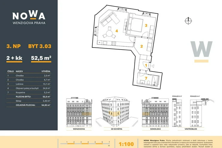 We are offering for sale a one-bedroom apartment with a floor area of 52.5 sqm, located on the 3rd floor of the NOWA Wenzigova Prague project. The apartment offers an airy living space and a practical layout suitable for comfortable urban living.The dominant feature of the apartment is a spacious living room with a kitchenette, which naturally connects the dining and relaxation areas. The apartment also includes a separate bedroom, bathroom, and entrance hall.The unit includes a 2.43 sqm storage unit , which expands the apartment's storage options. It will be possible to rent a parking space directly in the building.The Nowa Wenzigova project is being built in the heart of the city, at the border between Prague’s Vinohrady and New Town districts. This historic Art Nouveau building, currently undergoing a sensitive renovation, will offer modern and functional living in the atmosphere of a traditional, vibrant urban neighborhood.All historical details, including the building’s facade, will be restored with respect for its historical character. The well-designed small-sized apartments will provide ample comfort and are a good choice for urban living, long-term investment, and rental. The elegant interiors of the common areas will be complemented by modern technical equipment. All to a high standard. For this purpose, future investors will appreciate the full range of amenities in the common areas of the building, including the entrance lobby and concierge. Wenzigova 4 is located in a premium part of Prague 2, on the border of New Town and Vinohrady, in a neighborhood with the typical atmosphere of wide, tree-lined streets, cafes, boutiques, and restaurants. Within walking distance, you’ll appreciate plenty of greenery and several parks — the popular Riegrovy Sady, Grebovka Park, and Folimanka Park offer space for relaxation and outdoor sports. Excellent transport accessibility, including public transit, ensures quick connections to the city center and other parts of the city. This location is among the most stable in Prague in terms of housing prices and rental demand.