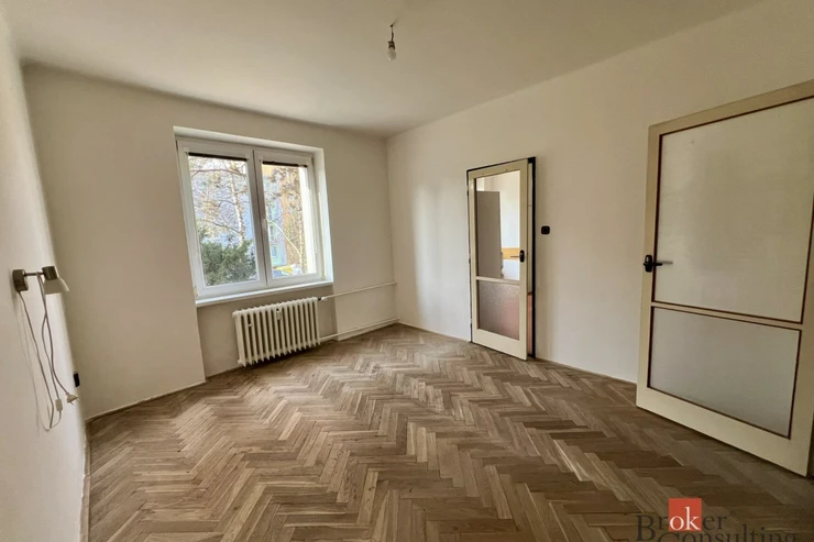 Byt je v udržovaném původním stavu – zachovalé parkety, umakartové jádro, oddělená koupelna a toaleta. Nabízí tak ideální příležitost k modernizaci dle vlastních představ a zvýšení jeho tržní hodnoty. Obývací pokoj je orientován na jihovýchod, ostatní obytné místnosti na severozápad, což zajišťuje dostatek světla během dne.