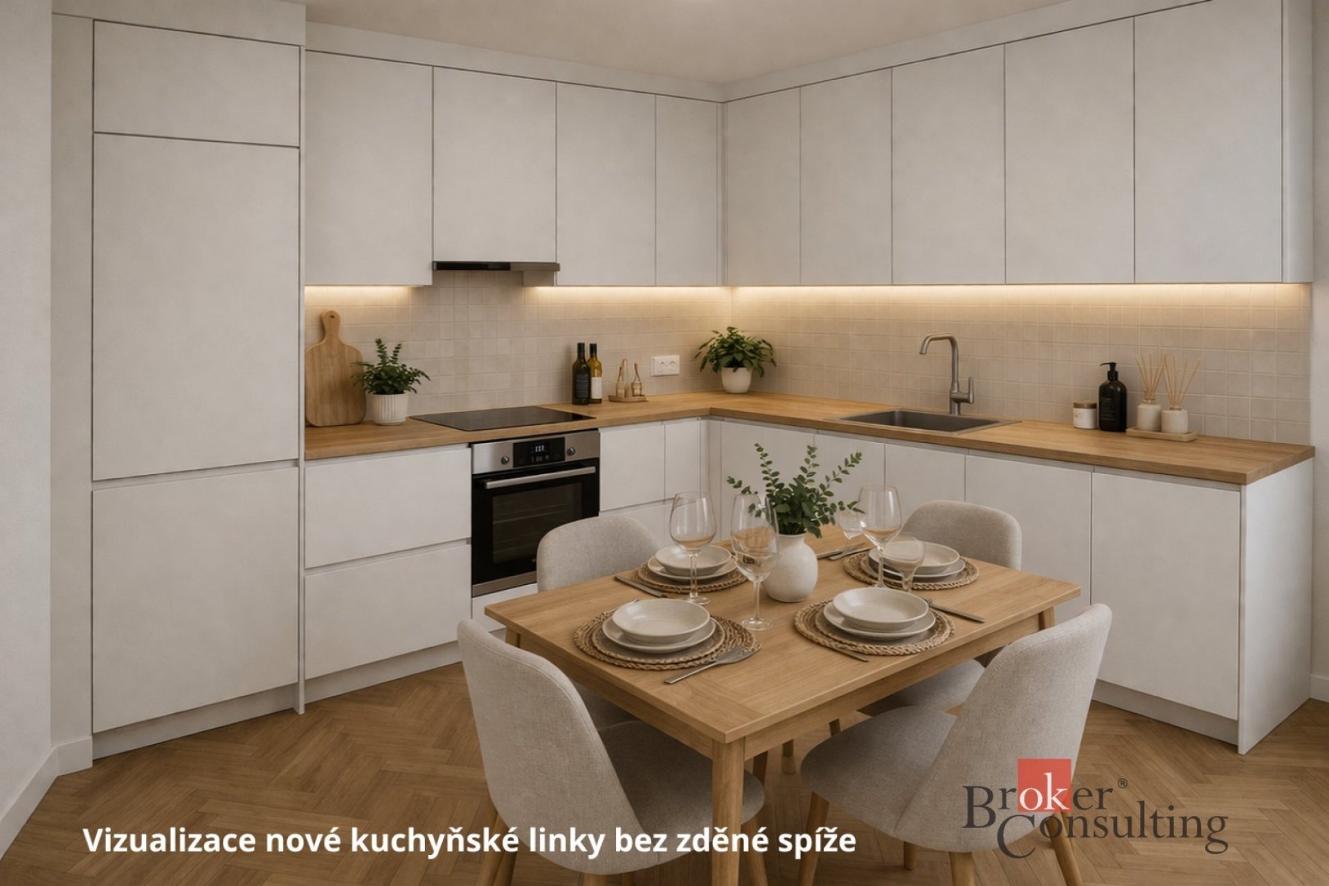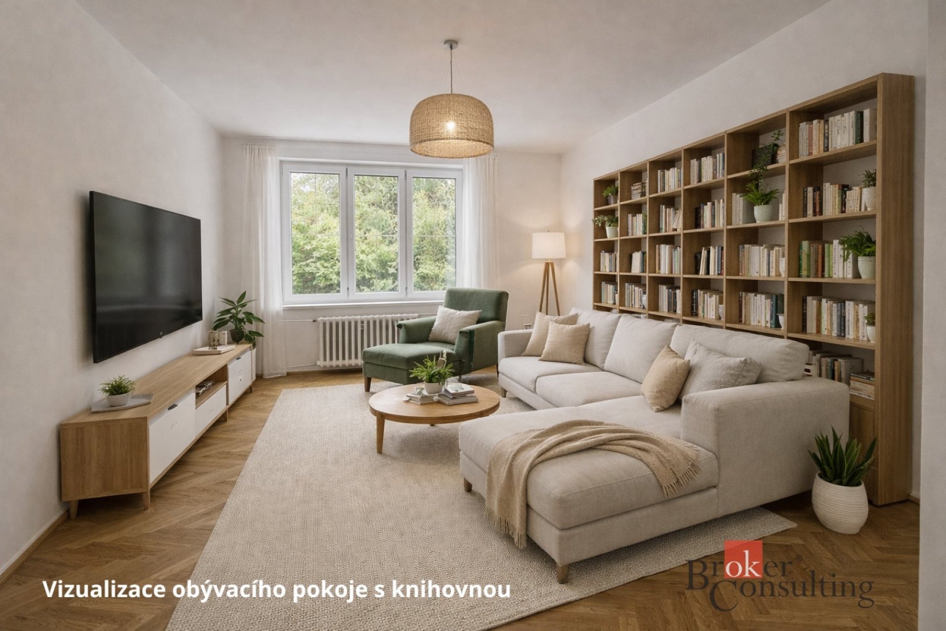 Dispozice bytu je velmi praktická: kuchyň (9,3 m²), obývací pokoj (20,4 m²), samostatný pokoj (13,9 m²), koupelna (2,2 m²), oddělené WC (0,9 m²) a předsíň (4,5 m²). K bytu náleží také sklep o velikosti 2,2 m² v suterénu domu.