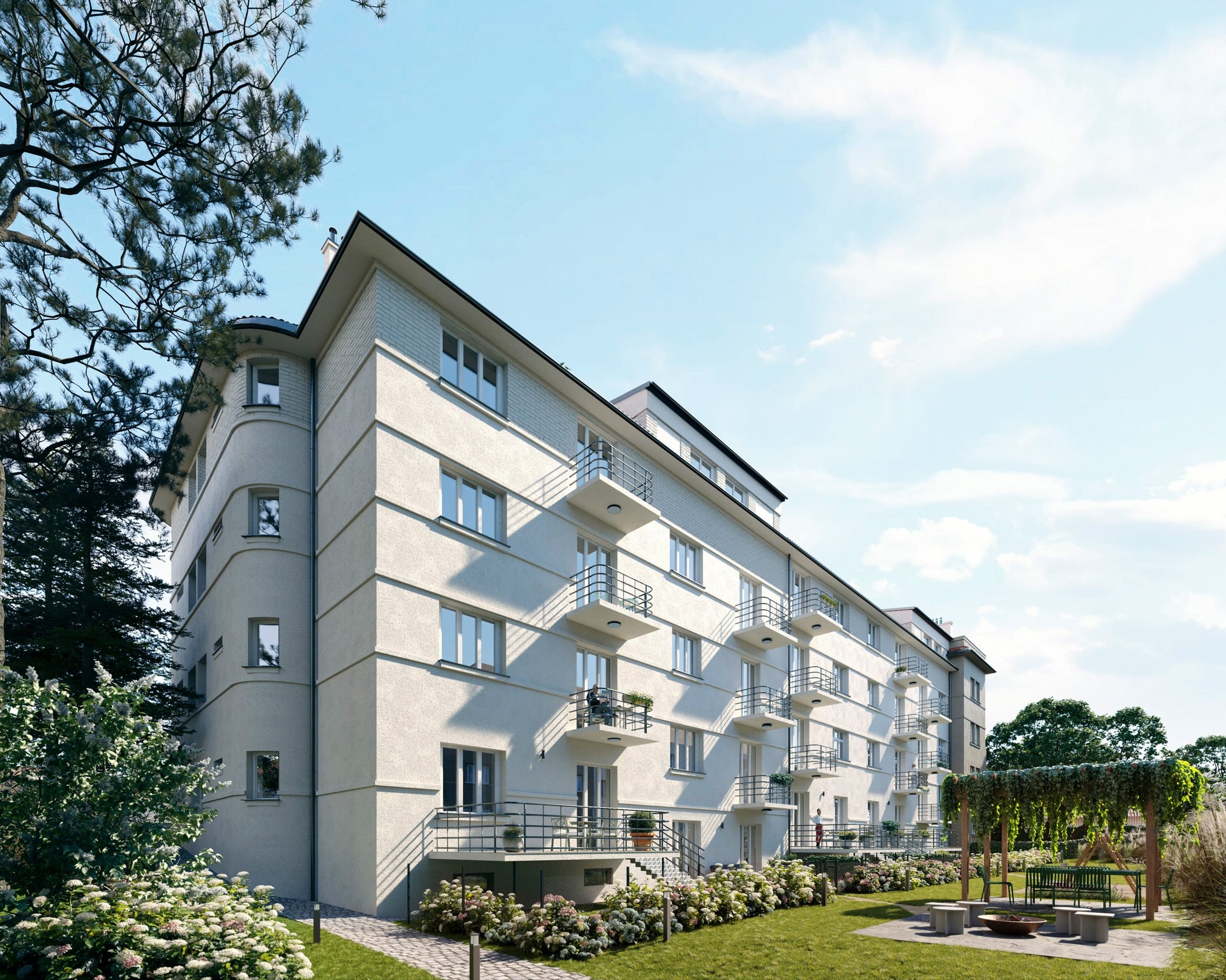 The Braník Living project sensitively follows the character of the original housing development and brings a new standard of living. The complex will also include a private community courtyard – a green oasis with a gazebo, a children's playground, fitness facilities, and a space for petanque. Braník, a sought after district of Prague has excellent access to the center. Cafes, cultural venues, sports facilities, and basic civic amenities can all be found in the area. Thanks to the proximity of the southern section of the Prague Ring Road, it is also convenient to travel by car.