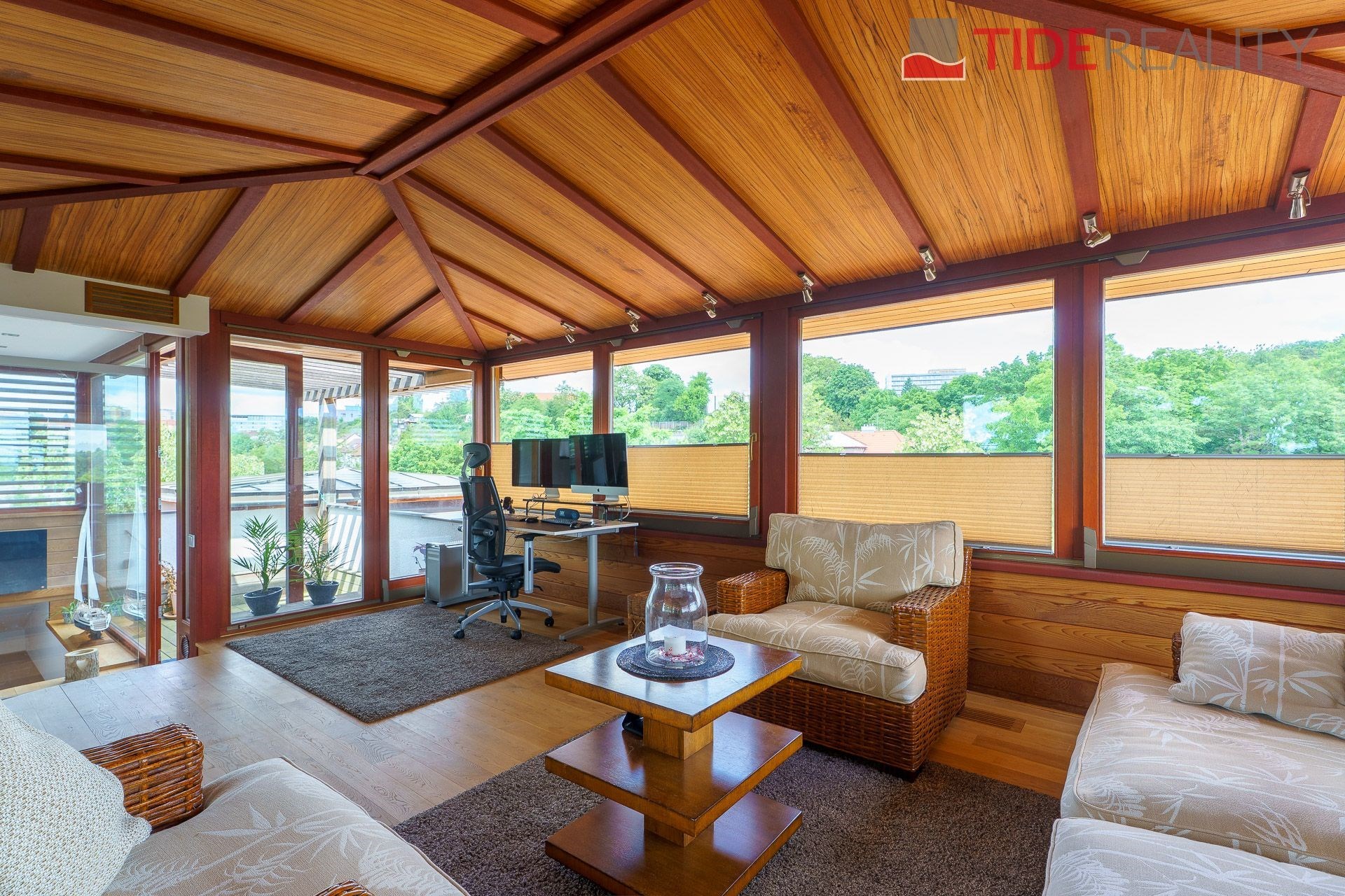 Nabízíme k prodeji atraktivní byt 4+kk + zimní zahrada v nejvyšším podlaží novostavby z roku 2006 umístěné ve vilové čtvrti. Nadstandardně řešený byt nabízí prostor, klid a výhledy do okolní zeleně. V pěší vzdálenosti od metra, ale přitom na úpatí zeleného svahu.