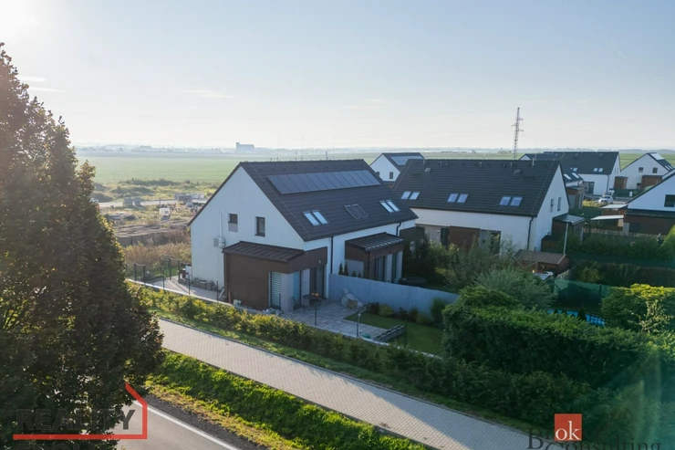 V blízkosti se nachází dětské hřiště, kavárna a další rodinné zázemí – ideální místo pro ty, kteří hledají soukromí, pohodlí a kvalitní bydlení v dojezdové vzdálenosti města.