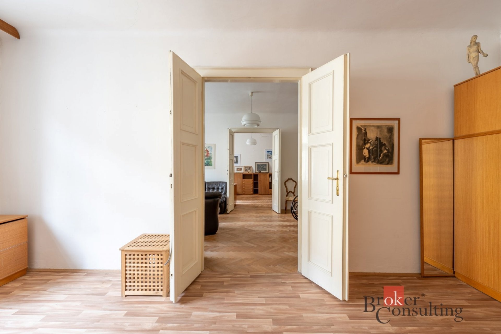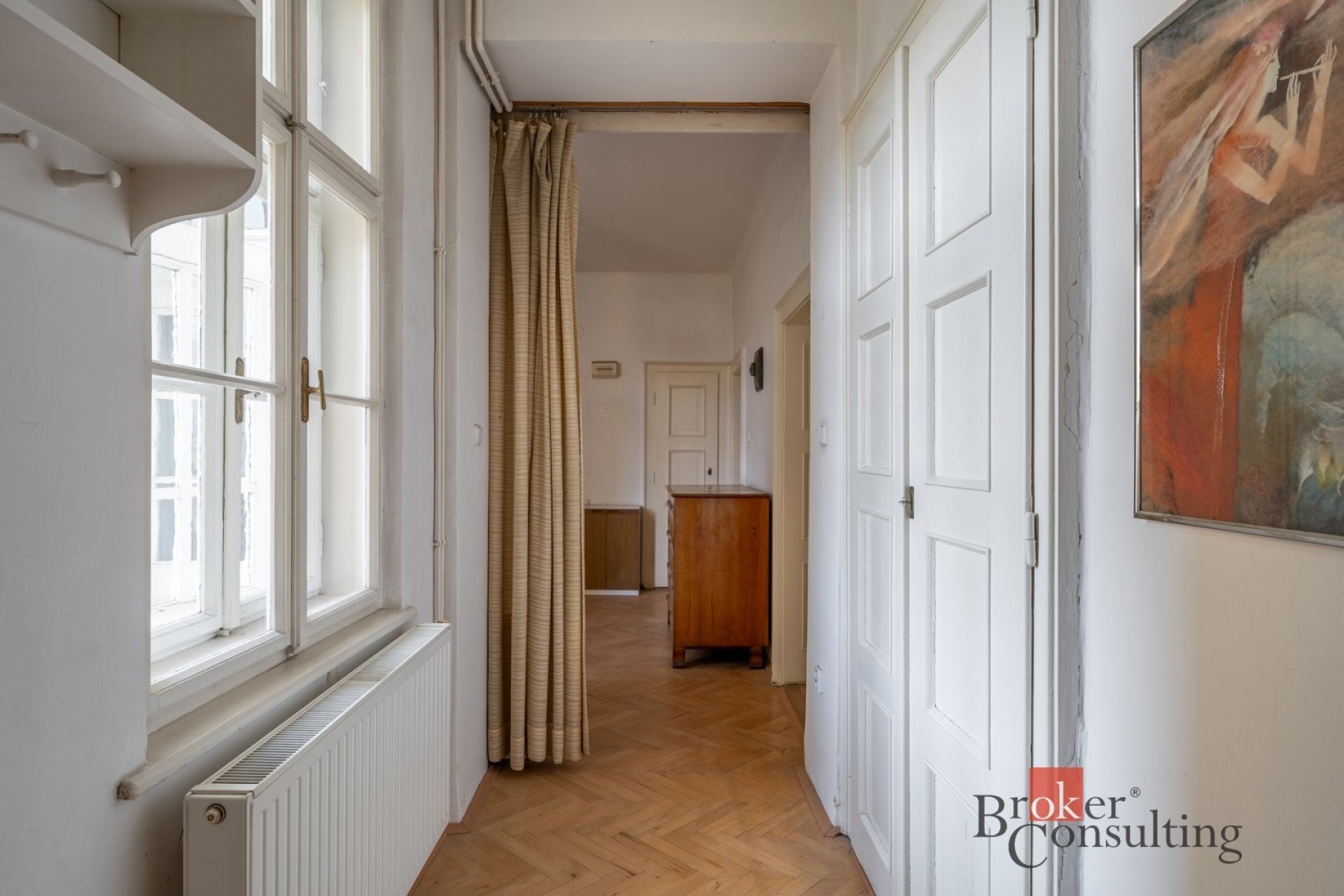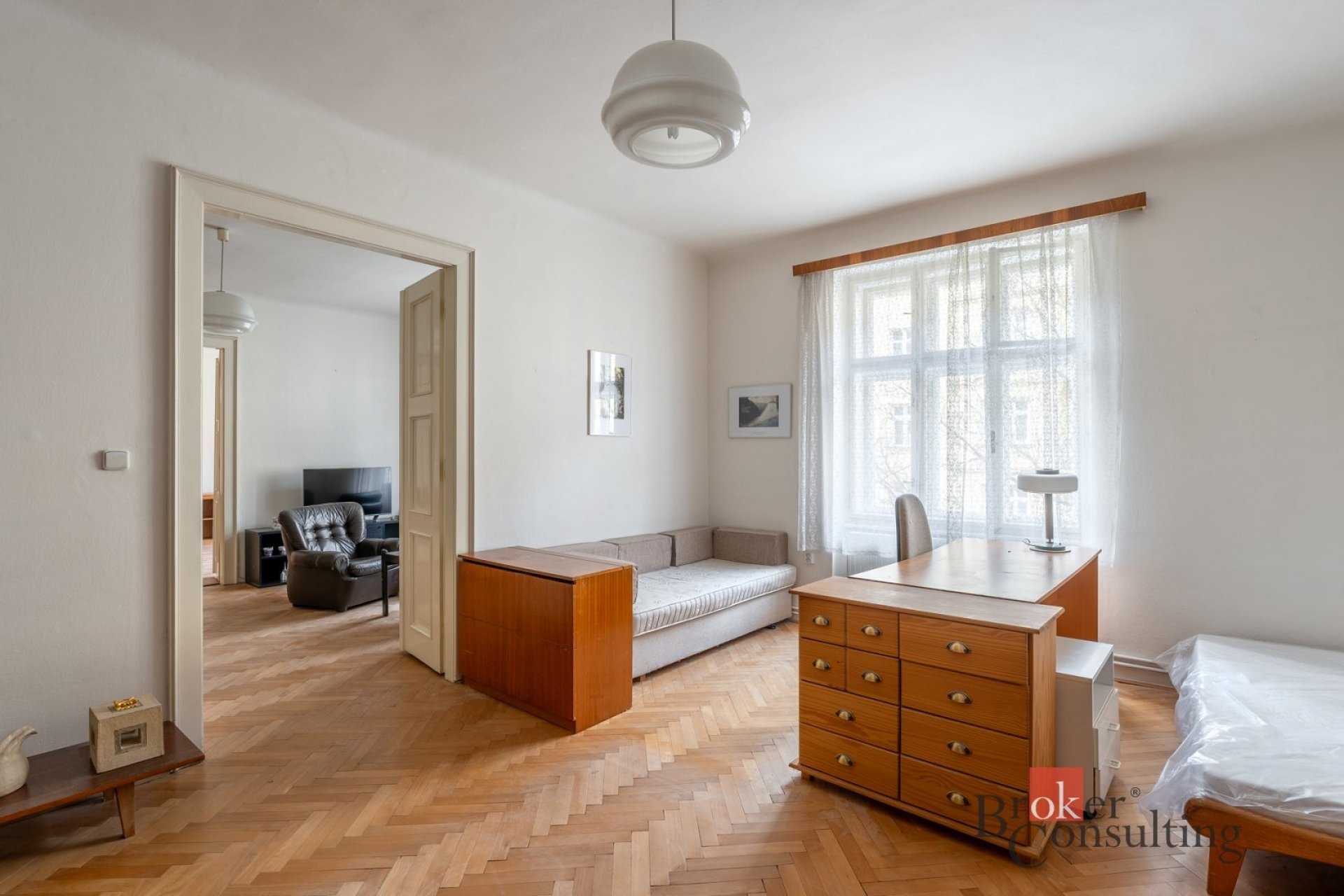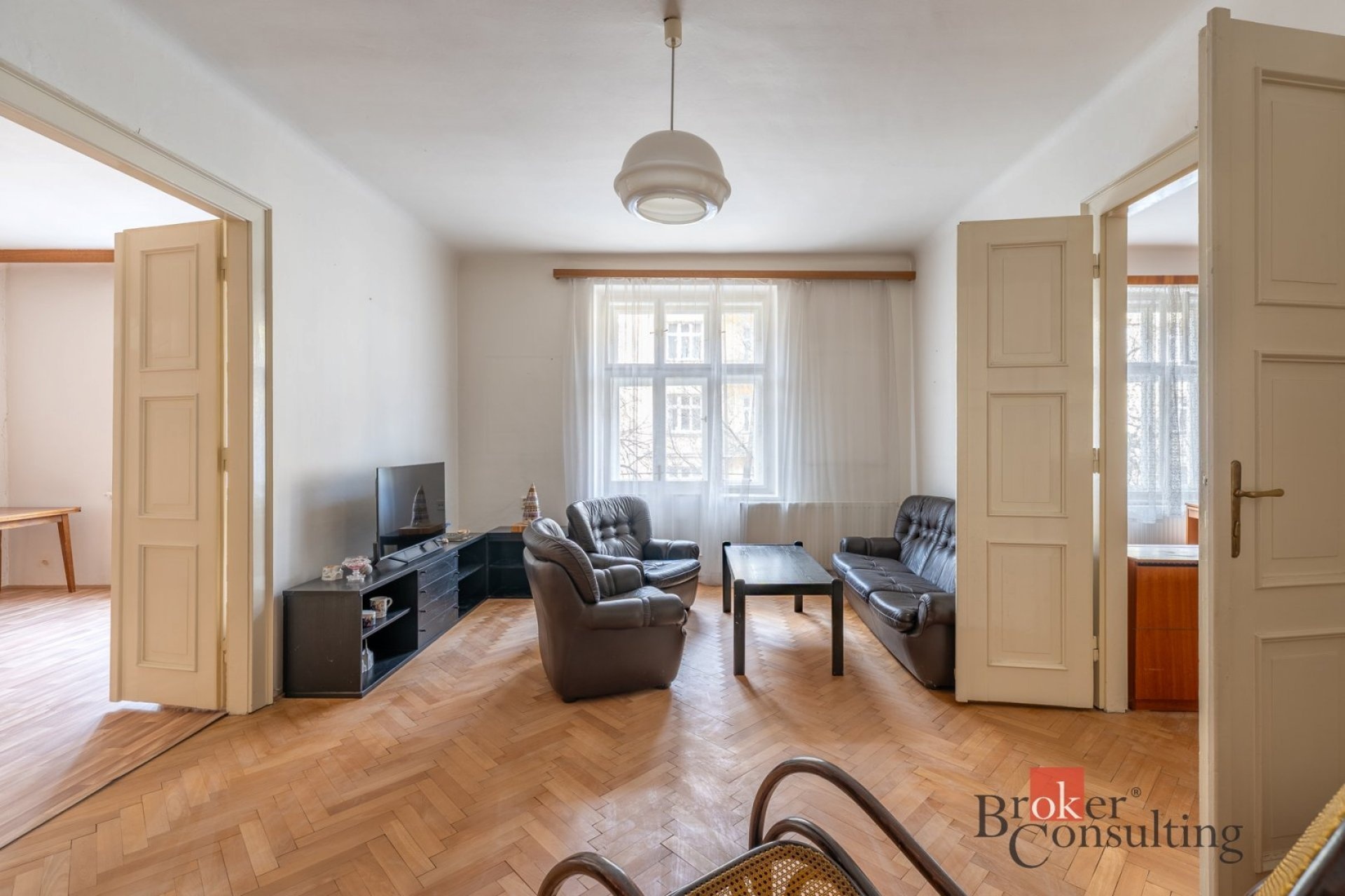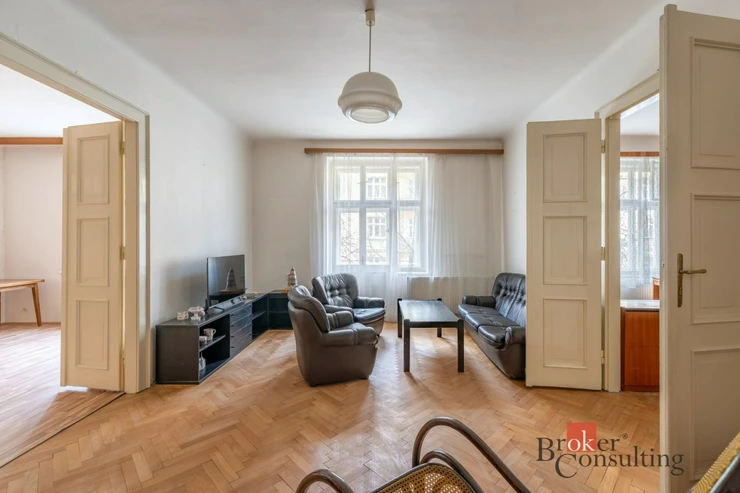 Byt si zachoval svůj původní charakter – kazetová okna, krásné parkety a velkorysé 3 metrové stropy. Je udržovaný a ihned připravený k nastěhování.