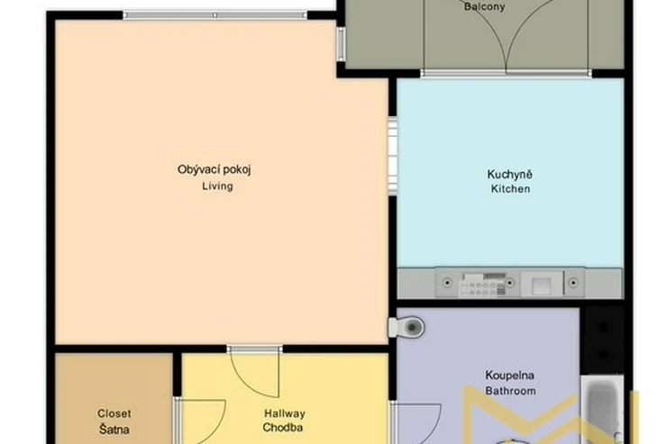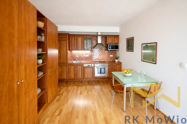 In this location, we offer for sale an air-conditioned 1-bedroom apartment (1+1) with a usable area of 52 sqm and a terrace of 10 sqm, situated in a barrier-free building with a lift. The layout is practically designed and includes an entrance hall providing access to the living room, bathroom, and storage room. The main living area feels bright and spacious and allows for flexible arrangement – it can easily be divided into a living and sleeping zone. The living room is connected to a separate kitchen, which offers ample space for a dining area and features a built-in wardrobe with an integrated fold-down bed, enhancing the functionality of the space. From the kitchen, there is direct access to a spacious terrace with views of the greenery of Central Park Stodůlky and the Nepomucký pond. The terrace represents a significant benefit of the apartment and provides a pleasant space for relaxation.