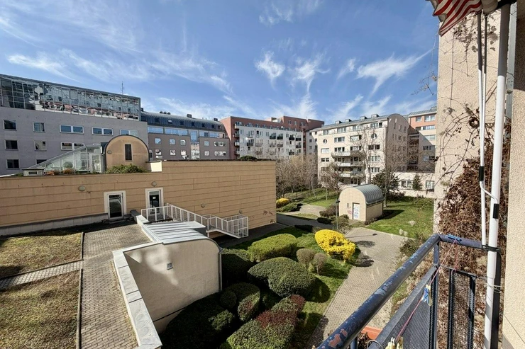 The apartment stands out thanks to its functional layout and large French windows providing plenty of natural light. It features an entrance hall with built-in wardrobe, a spacious living area with a fully equipped kitchenette (dishwasher, fridge with freezer, hob, extractor hood), and a bathroom with a bathtub and toilet. A storage unit is included.