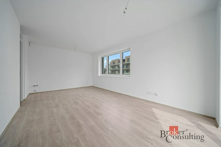 Dominantou je světlý obývací prostor s výstupem na balkon, ideální pro ranní kávu nebo večerní odpočinek. Velkou výhodou je, že byt je připraven bez kuchyňské linky, takže si nový majitel může kuchyň navrhnout a realizovat zcela podle svých představ a potřeb.
