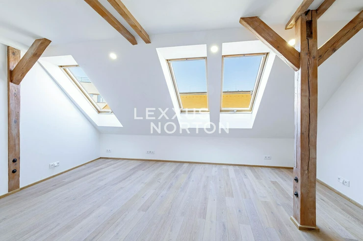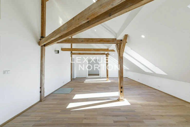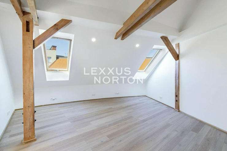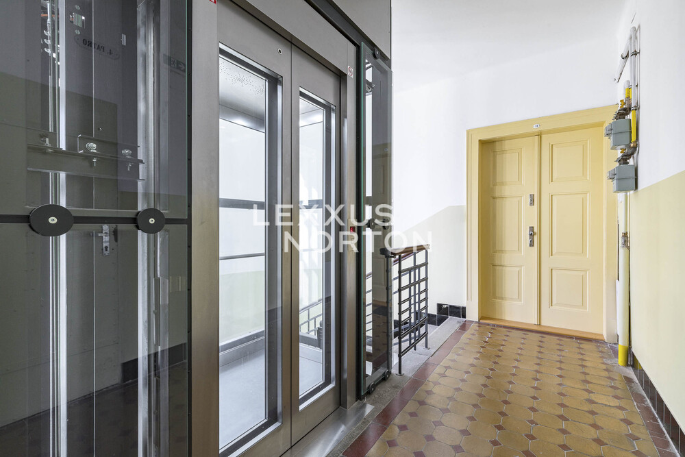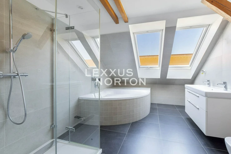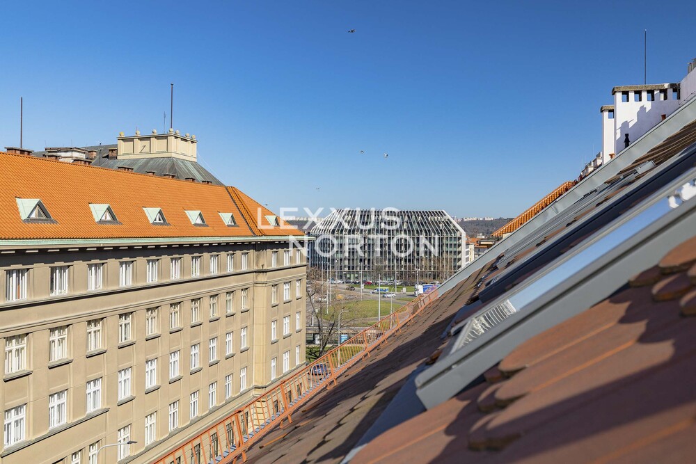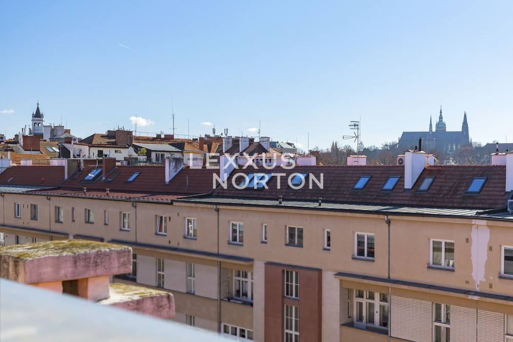 The spacious apartment on the top floor of the house on the corner of Kafkova and Buzulucka streets in Dejvice is attractive for its solution, where the entire interior area of 238 sqm is distributed only on the 5th floor and the staircase is used only when we want to go out to the roof terrace with an area of 51 sqm. The apartment is arranged in a layout with four bedrooms, each with its own bathroom, a large living room facing southwest and a separate kitchen with a dining room, from which the aforementioned staircase leads to the roof terrace. The terrace, although large, is completely hidden behind the ridge of the roof and is thus protected from views from surrounding houses. The terrace floor is statically reinforced to accommodate an outdoor jacuzzi. Returning to the interior, we must not forget to mention that one of the bedrooms of the apartment is situated and structurally prepared in such a way that it can be used for separate use. This opens up the possibility of multi-generational living with a student child or a senior parent. An alternative is the possibility of inserting an entrance door into this part of the apartment and creating an independent studio apartment with the possibility of external rental. Heating and energy metering take this possibility into account. The interior of the apartment is well-lit, the rooms are spacious, and the equipment is designed in natural light tones. The house has a new elevator with an exit directly at the apartment. The interior of the house is clean and continuously maintained. The condominuim of the house is currently building an office in the lower ground floor, which will be externally rented out and the income from this rental will be an important benefit to all owners in the house. There is also a quiet internal garden with benches and mature greenery in the courtyard.Parquet floors. Underfloor heating. Preparation for air conditioning. Preparation for a gas fireplace. Preparation for a kitchen unit. 2x gas boiler with a hot water tank. Bathrooms equipped with high-quality sanitary ware.The house at Buzulucka 6 is built on the corner of Kafkova and Buzulucká, it is a quiet place without car traffic, but at the same time 200m above Vítězné náměstí and therefore within walking distance of the local transport hub. The city center is accessible within 10 minutes. The airport is within 20 minutes by car.