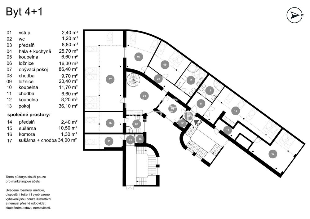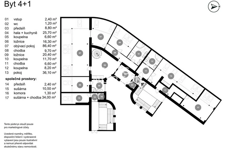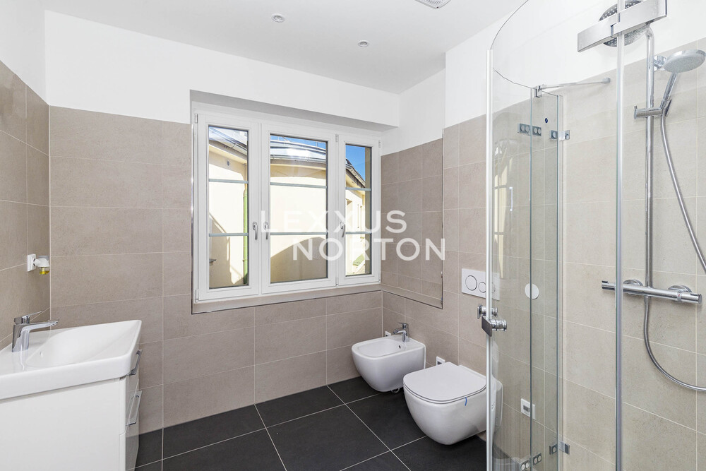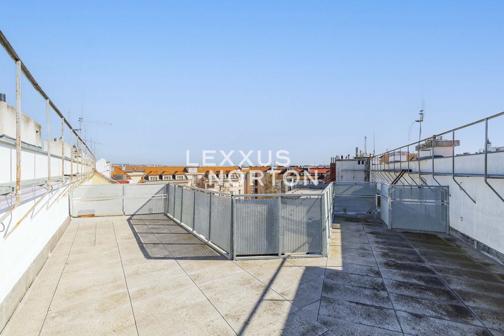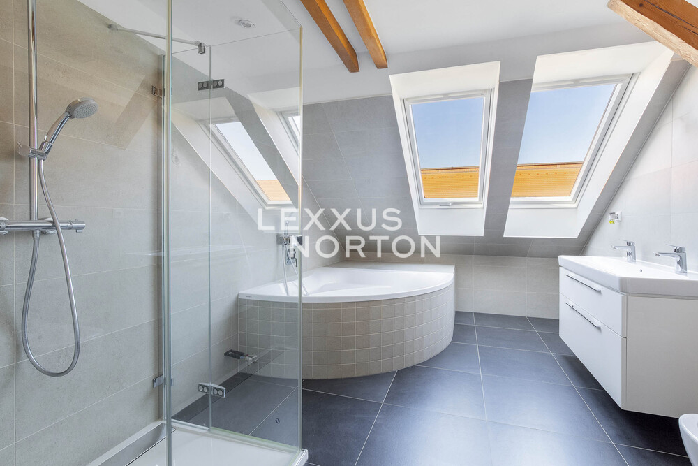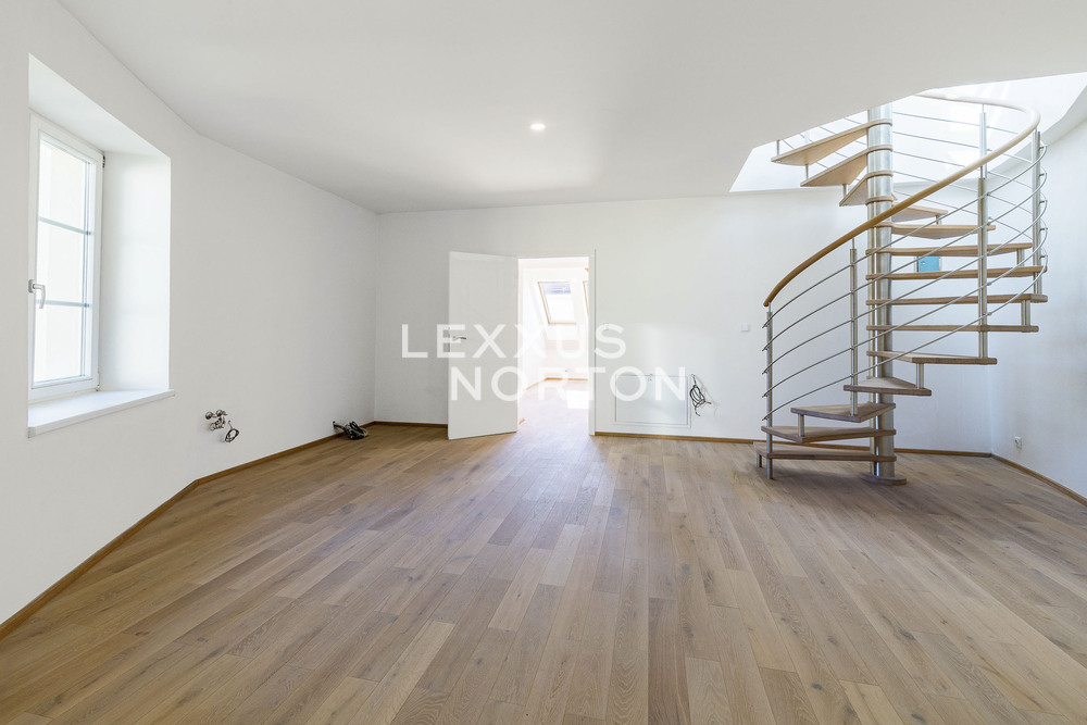 The spacious apartment on the top floor of the house on the corner of Kafkova and Buzulucka streets in Dejvice is attractive for its solution, where the entire interior area of 238 sqm is distributed only on the 5th floor and the staircase is used only when we want to go out to the roof terrace with an area of 51 sqm. The apartment is arranged in a layout with four bedrooms, each with its own bathroom, a large living room facing southwest and a separate kitchen with a dining room, from which the aforementioned staircase leads to the roof terrace. The terrace, although large, is completely hidden behind the ridge of the roof and is thus protected from views from surrounding houses. The terrace floor is statically reinforced to accommodate an outdoor jacuzzi. Returning to the interior, we must not forget to mention that one of the bedrooms of the apartment is situated and structurally prepared in such a way that it can be used for separate use. This opens up the possibility of multi-generational living with a student child or a senior parent. An alternative is the possibility of inserting an entrance door into this part of the apartment and creating an independent studio apartment with the possibility of external rental. Heating and energy metering take this possibility into account. The interior of the apartment is well-lit, the rooms are spacious, and the equipment is designed in natural light tones. The house has a new elevator with an exit directly at the apartment. The interior of the house is clean and continuously maintained. The condominuim of the house is currently building an office in the lower ground floor, which will be externally rented out and the income from this rental will be an important benefit to all owners in the house. There is also a quiet internal garden with benches and mature greenery in the courtyard.Parquet floors. Underfloor heating. Preparation for air conditioning. Preparation for a gas fireplace. Preparation for a kitchen unit. 2x gas boiler with a hot water tank. Bathrooms equipped with high-quality sanitary ware.The house at Buzulucka 6 is built on the corner of Kafkova and Buzulucká, it is a quiet place without car traffic, but at the same time 200m above Vítězné náměstí and therefore within walking distance of the local transport hub. The city center is accessible within 10 minutes. The airport is within 20 minutes by car.