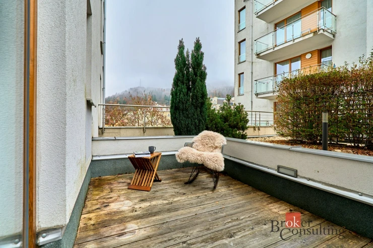 Byt se nachází v klidné a prestižní části města, přitom s výbornou dostupností lázeňské části, kaváren a kulturních památek.