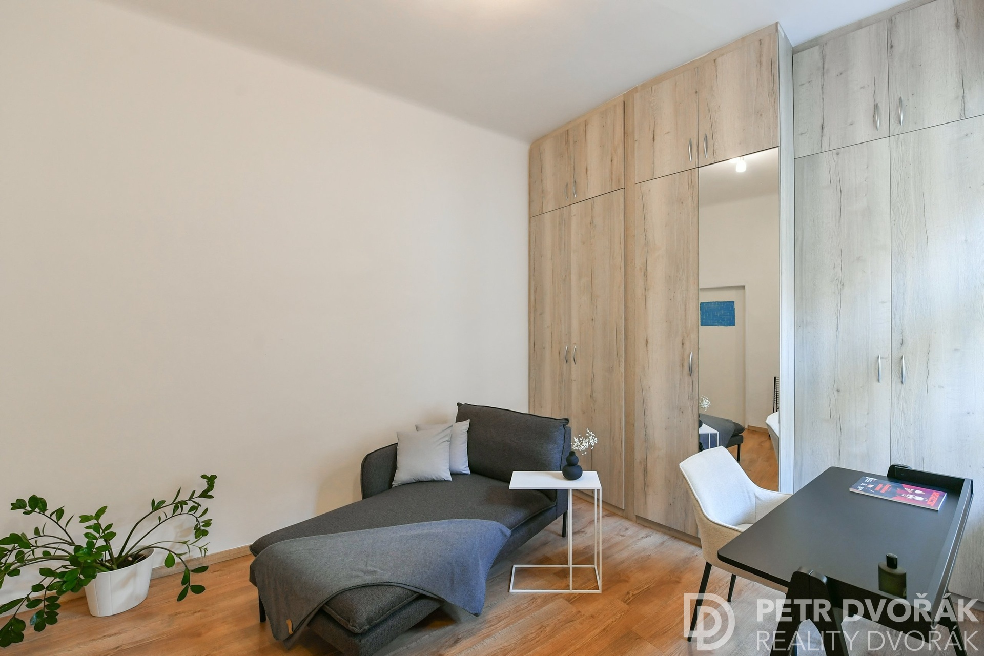 Beyond the terrace, a separate room with a window to the courtyard and a built-in wardrobe. A study, a guest room – your choice.