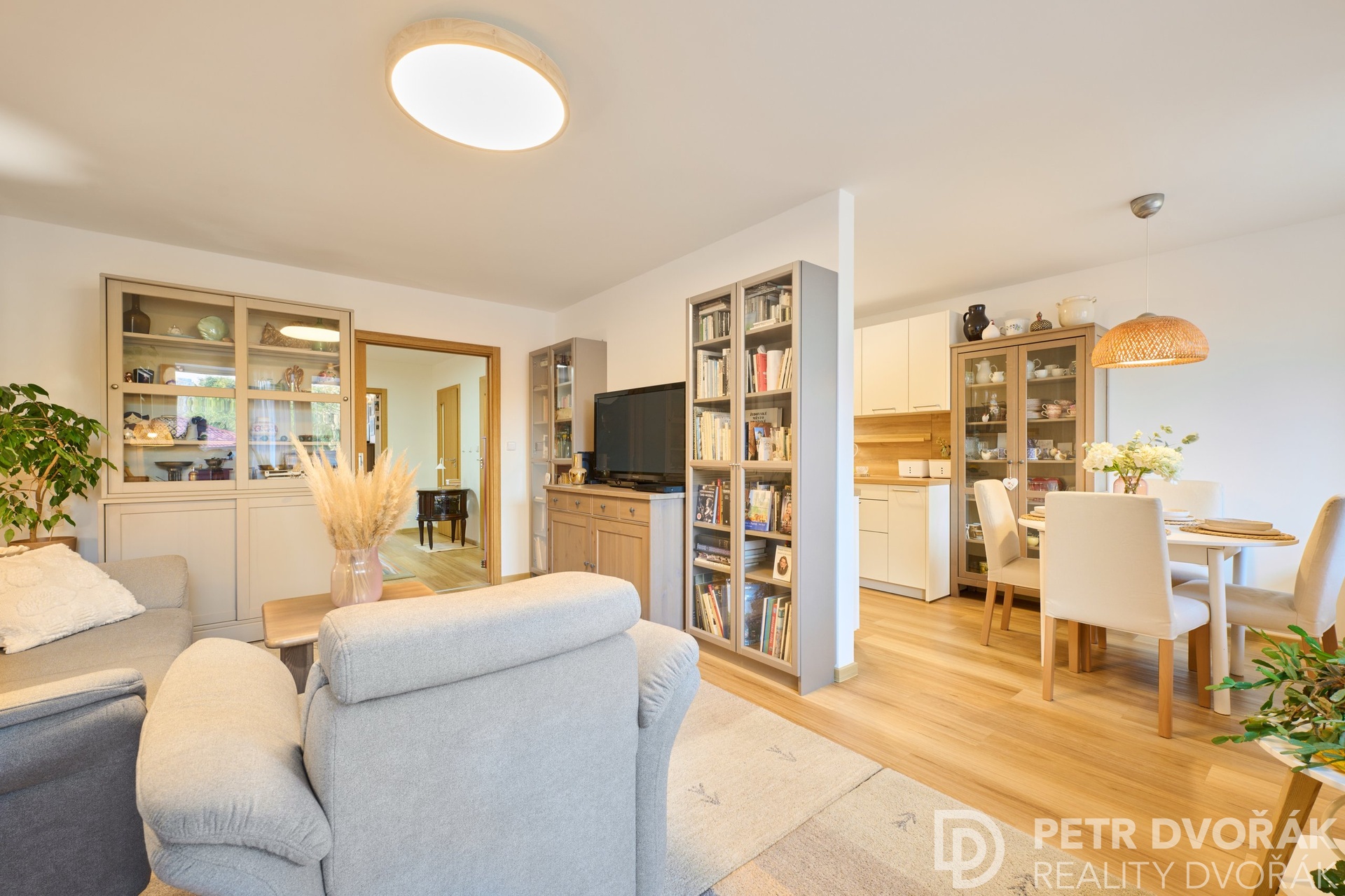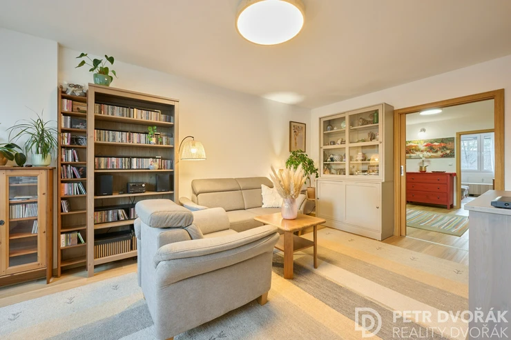 Spacious apartment in private ownership, currently configured as a 4+1 (4-room apartment with a separate kitchen) with a floor area of 109.8 m², located on the 2nd floor of a low-rise residential building with a family-house character, in the historic core of Old Stodůlky.