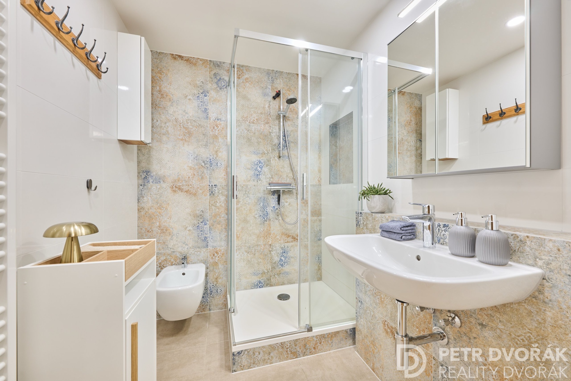 Parking is available directly in front of the building or in the adjacent parking area without residential parking restrictions. Metro stations Stodůlky and Luka are within walking distance, with a bus stop nearby. The area offers full civic amenities, including primary and nursery schools, a Montessori kindergarten, an art school, a grammar school, sports facilities, Panská zahrada park, and access to the Central Park.