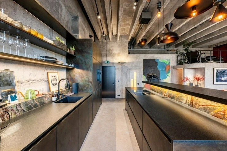 Representative, completely unique, luxurious loft, completely equipped according to the design of Ivanka Kowalski, 277.4 m2 loft with private car lift, parking terrace for two cars right at the entrance to the apartment in the Vanguard project with the unrepeatable genius loci of the original industrial building of the former Microna in Modran, reconstructed so that has retained its raw and industrial character. The purchase price includes complete equipment according to photo documentation.