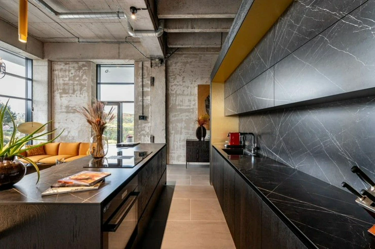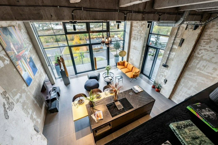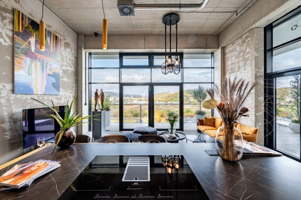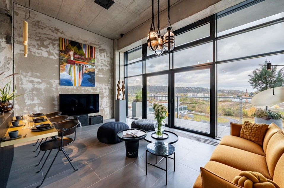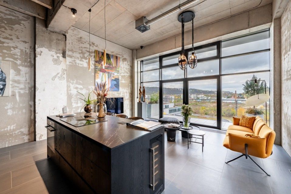Representative, completely unique, luxurious loft, fully equipped according to the design of Ivanka Kowalski, 1+kk (93 m2 m2) loft with a terrace, a parking space and a cellar included in the purchase price on the 6th floor with an elevator in the Vanguard project with the unrepeatable genius of the loci of the original industrial building of the former Modranská Micron renovated to retain its raw and industrial character. The purchase price includes complete equipment according to photo documentation.