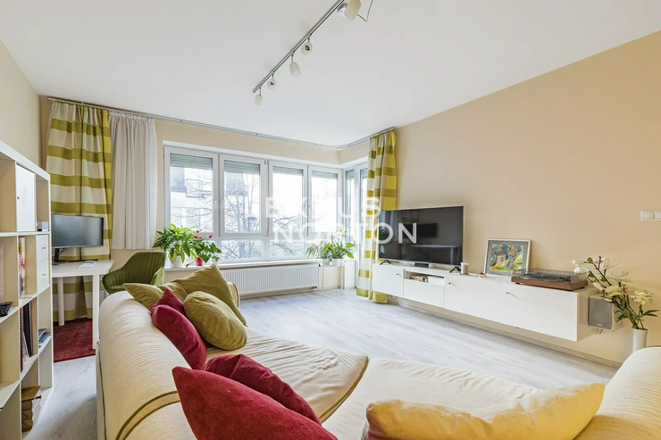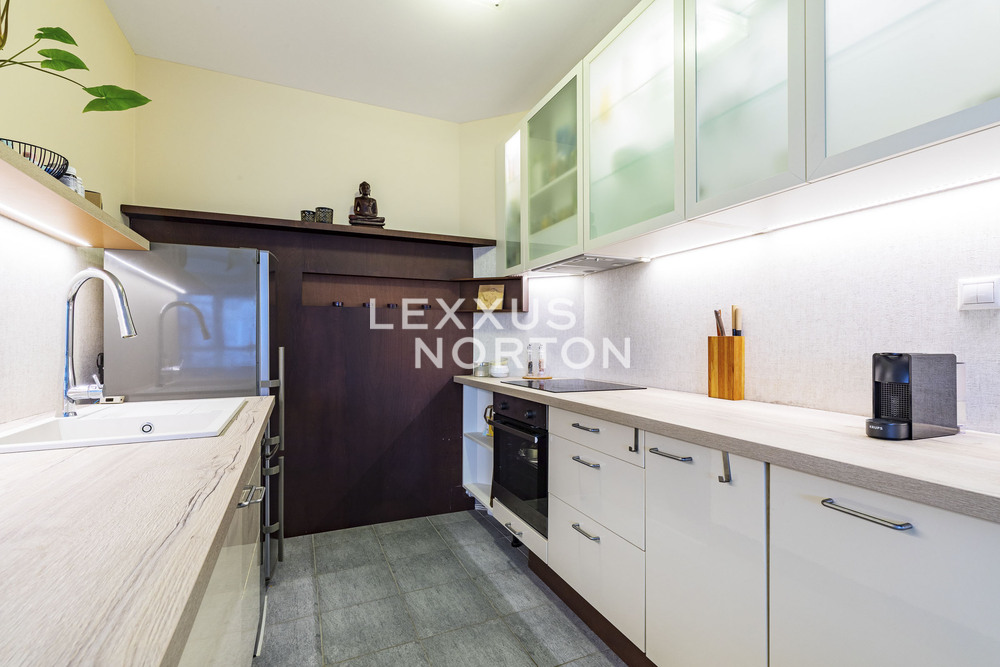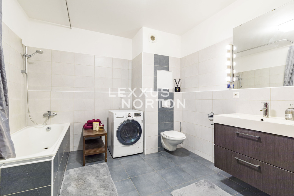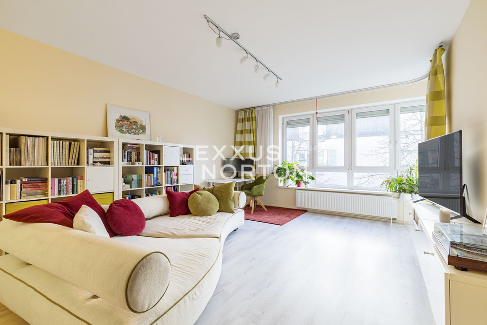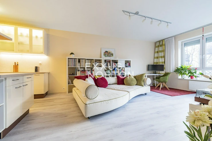 "Space" is the word that comes to mind after visiting this apartment in a new residential building on U Staré cihelny Street in Žižkov. The interior with a 1-bedroom layout is spread over 61 sqm, offering a comfortable solution for each room. The entrance hall (4.5 sqm) is followed by a living room with a kitchenette (32 sqm) and a bedroom (16.5 sqm), and the layout is completed by a bathroom (8 sqm). From the living room we can also go out onto the balcony (4 sqm). Like the two main rooms, it is oriented to the west with a view of the mature greenery and further towards the apartment building opposite. The apartment includes one parking space and a separate cellar (2.8 sqm) in the garage hall located on the 1st floor of the building.Kitchen with a complete set of appliances. Wooden floating floors in the living rooms. Large-format tiles in the hall and bathroom. Spacious built-in wardrobes in the hall and bedroom.The house is part of a wider new development that has been created in the area in recent years, thanks to which the originally unused areas have been transformed into a new residential district with additional services in the ground floors of the houses. The trend continues in the area of the Žižkov freight station, after its completion a new residential and cultural-commercial hub will be created here as an alternative to popular similar locations in Vinohrady or Karlín. All civic amenities are available in the area.