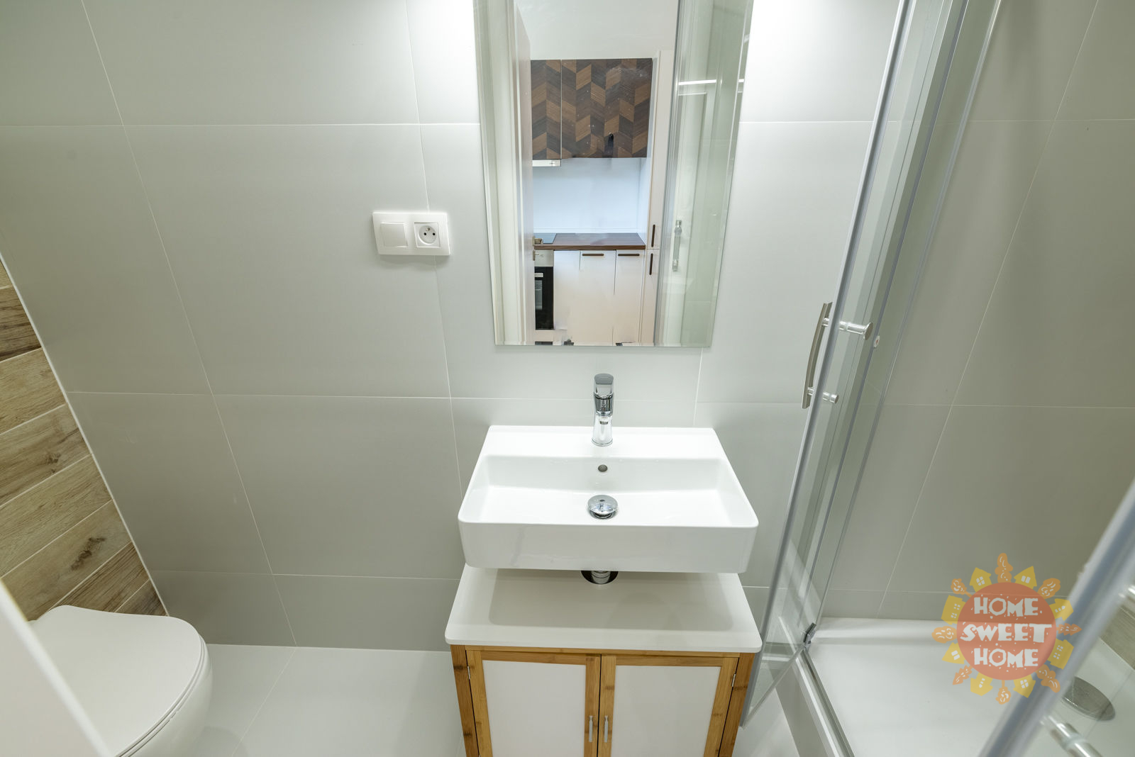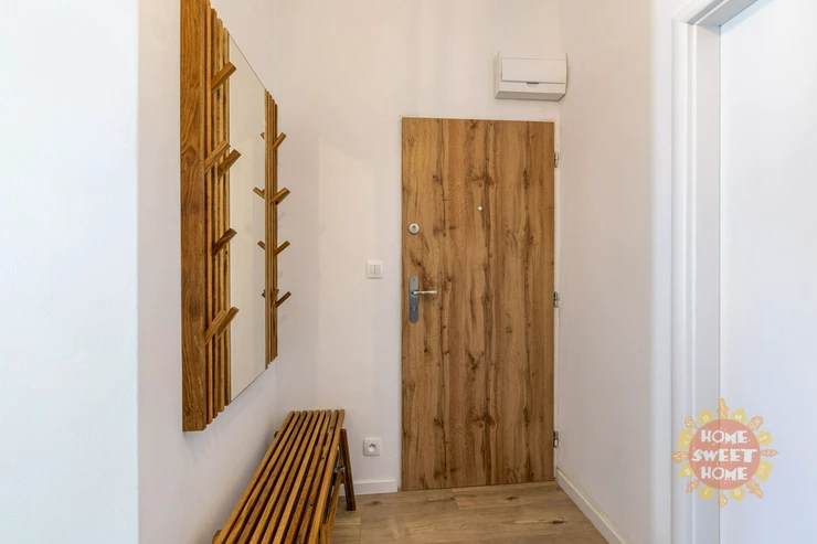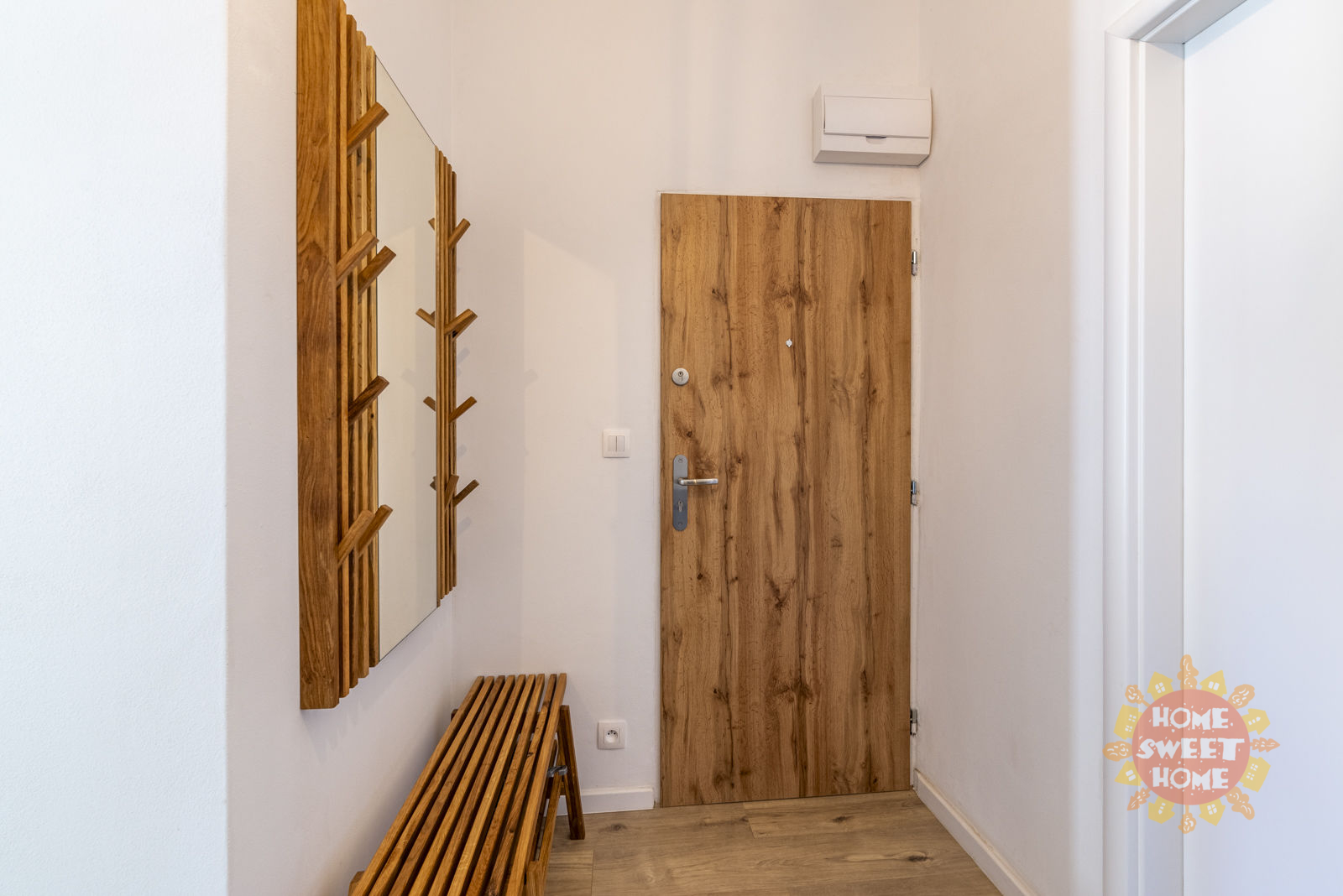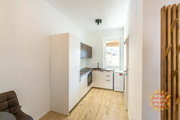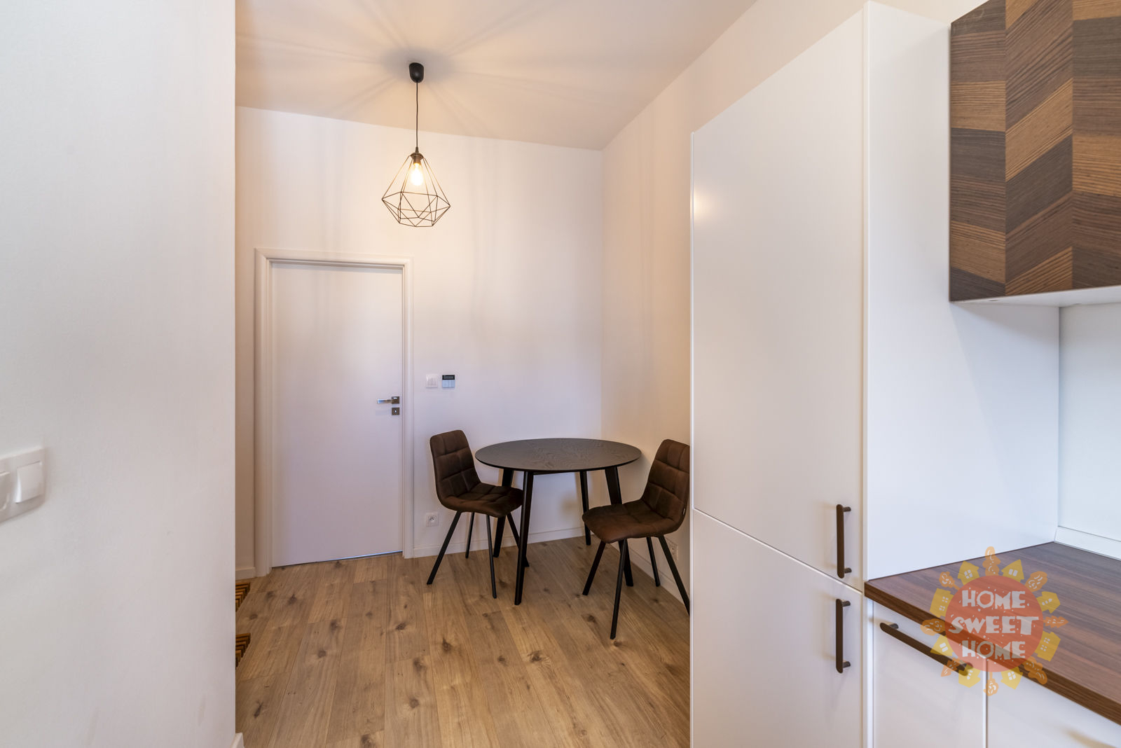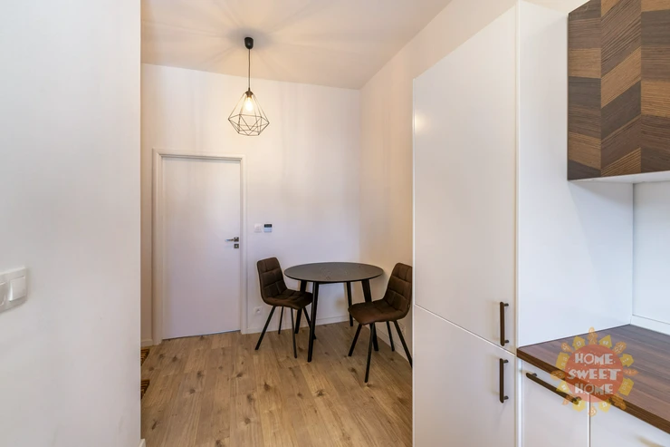The apartment underwent a complete renovation in 2023, offering modern and practical living without the need for further investment. The kitchen is fully equipped—electric stove, refrigerator with freezer, dishwasher, and washing machine. The bathroom features a shower stall and a toilet. The apartment has practical built-in closets that provide ample storage space. Electric floor heating enhances living comfort. The floors are a combination of laminate flooring and tile.