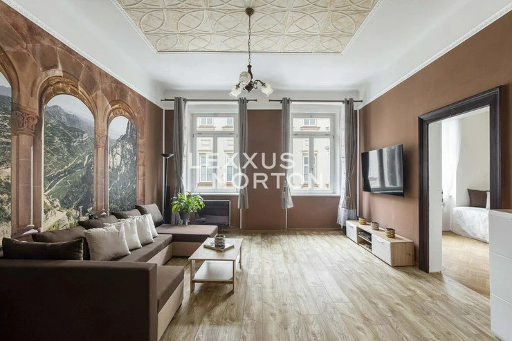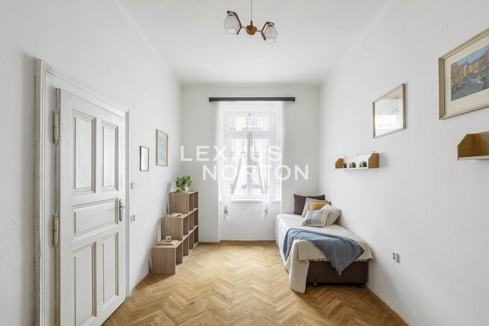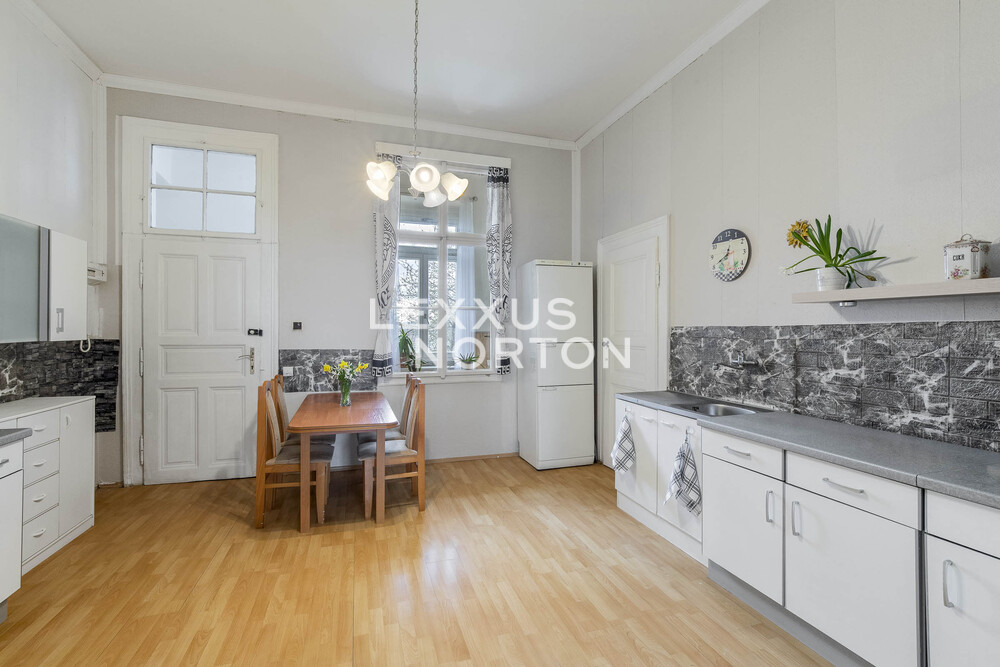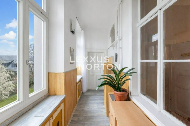 We offer a spacious 4+1 cooperative apartment on the second floor with a total area of 120 sqm, created by combining two units. The apartment building is located on a quiet street directly above Pod Korabem Park, and the windows offer panoramic views of the capital city.The entrance to the apartment is via a central open-access gallery with natural daylight, which functionally connects both original units. The current layout features two living rooms and two bedrooms. The separate kitchen is pleasantly brightened by a large window facing the gallery. The apartment also includes a bathroom with a bathtub and a separate toilet. A major benefit is the use of a shared garden, including a section reserved exclusively for the apartment’s owners.The apartment has been continuously maintained and offers potential for renovation and modernization according to the new owner’s individual preferences. Heating is provided locally by gas heaters (WAW), and hot water is supplied by an electric boiler.The housing cooperative is stable, and the building has a new façade and windows and is in good technical condition.The apartment is owned by a well-functioning housing cooperative, with an outstanding annuity of approximately CZK 400,000. Transfer to private ownership is not possible.Located in Prague 8, the property benefits from excellent access to the city center, with a tram stop just a 2-minute walk away. Next to the building is the Korab sports complex offering a wide range of activities, as well as Pod Korabem Park. A cycling path along the Vltava River is also easily accessible.