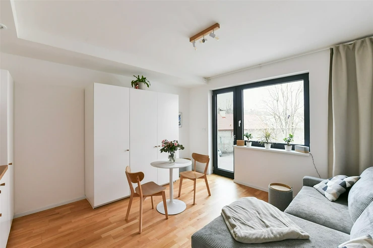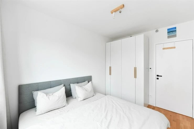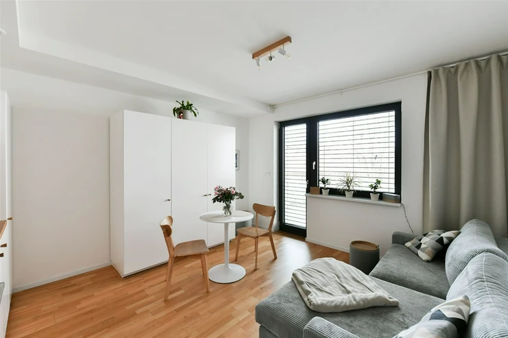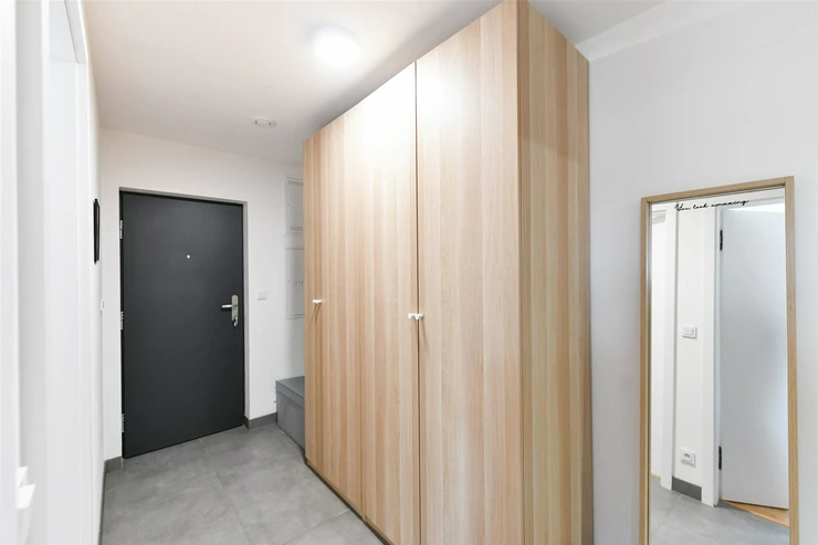 The apartment was designed with an emphasis on quality, comfort, and modern technology. The interior features large-format tiles and paving, wooden floors, and interior doors with flush frames. Security front doors are a matter of course. A major benefit is the triple-layered windows with external blinds, which provide excellent thermal and sound insulation.