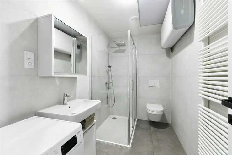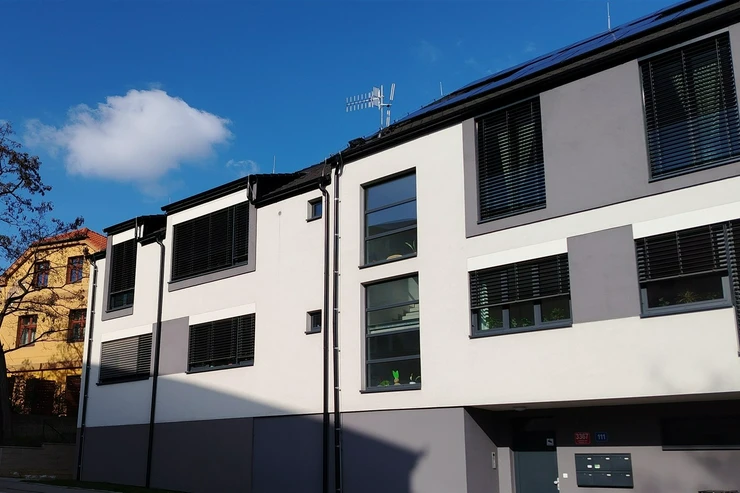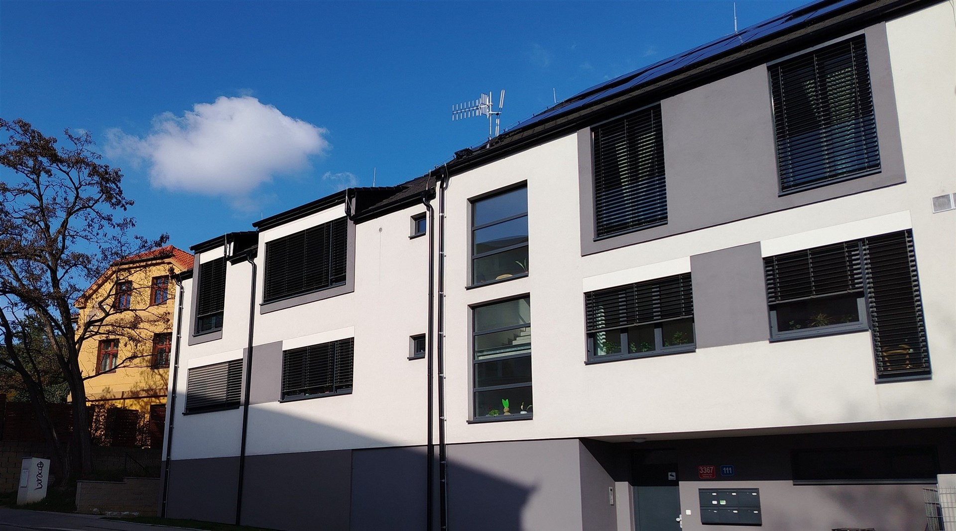 The building is equipped with modern technologies – heating is provided by a heat pump, solar panels are installed on the roof, and each apartment features a heat recovery system. These elements significantly reduce operating costs and increase living comfort. The energy demand of the building is classified as class B – very economical.