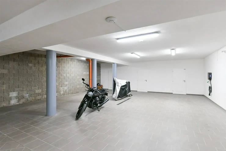 The apartment includes a long parking space that is ideal not only for a personal car but also a motorcycle. Directly behind the parking space is a cellar, which provides practical storage space. The building also offers a communal bike/stroller storage area and a utility room.