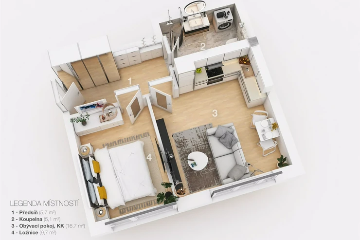 Bright south-facing 2+kk apartment with parking in a boutique residence – Prague 10 Záběhlice