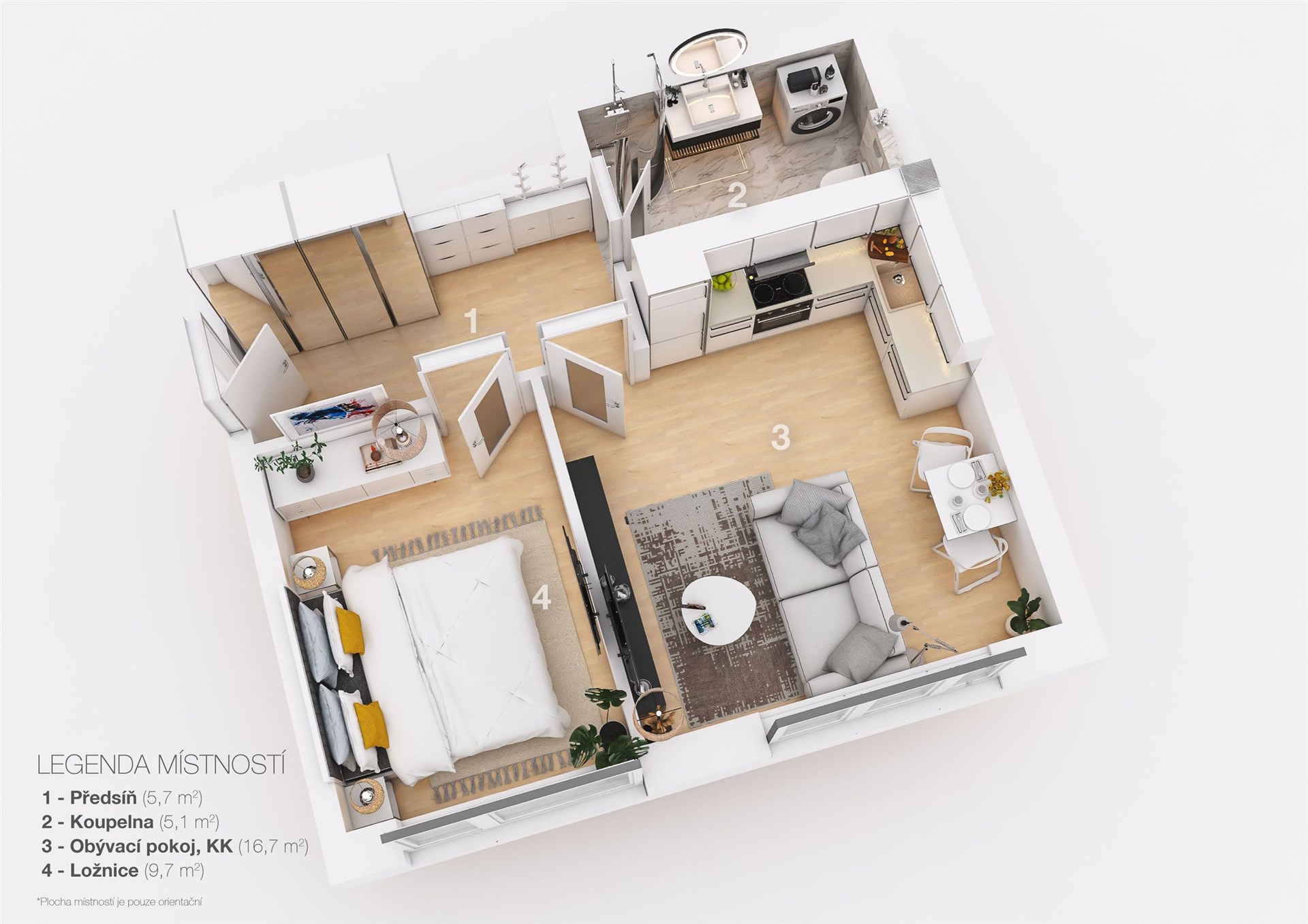 We are offering for sale a modern apartment with a 2+kk layout and a total area of 40 m², located on the 2nd above-ground floor of the new building "Bytový dům Záběhlice" in the attractive location of Prague 10 – Záběhlice. The project represents a boutique residence with only six residential units, ensuring quiet and private living.