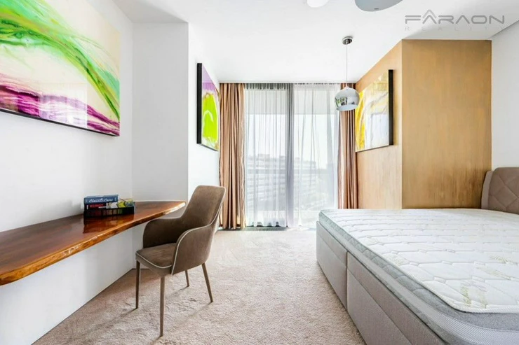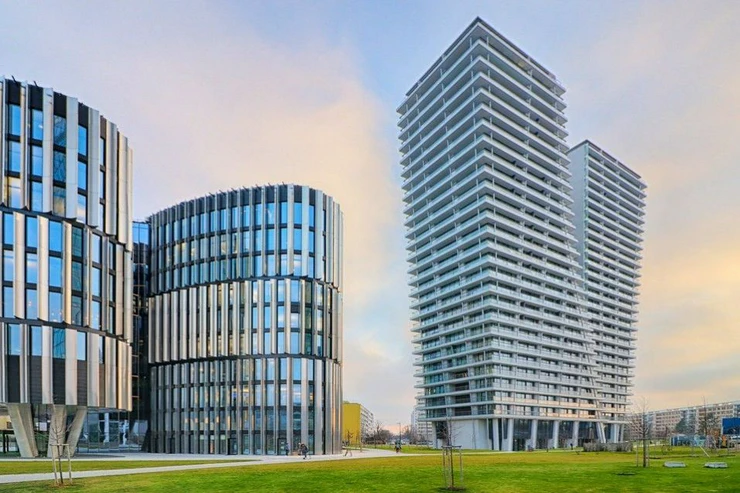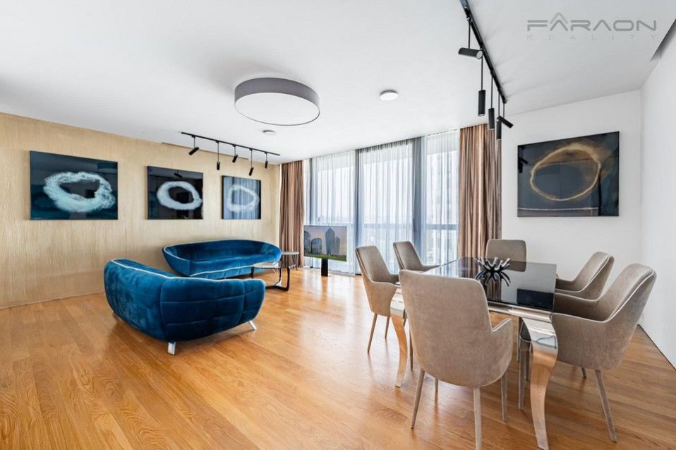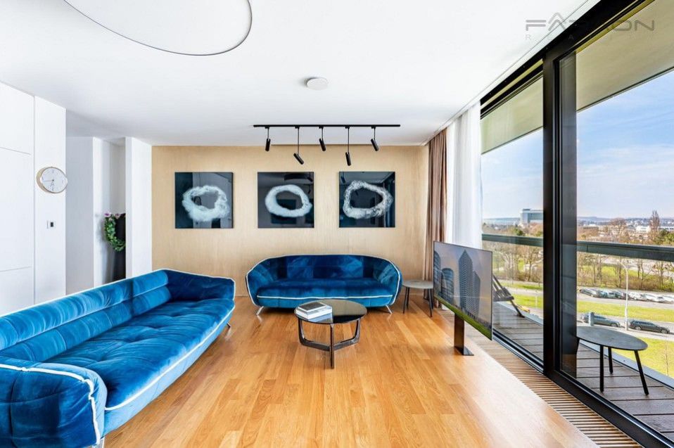 Sale of a representative, luxurious, fully furnished 3+kk apartment for immediate move-in, with a sunny, walk-out terrace and two parking spaces on the unique 8th floor of the western tower of the V Tower project, in a thirty-story, 104-meter-high skyscraper on Pankrac in Prague 4, northeast of the intersection of Pujmanová and Milevská streets, on the border of Krč and Nusle. The V Tower is a building with cutting-edge design, timeless technologies and luxurious materials, as well as an exemplary design with above-standard services for the most demanding residents. Of course, residents have a private fitness center, sauna, steam room and swimming pool, private cinema and club floor, golf simulator for relaxation, fast charging stations for electric cars.